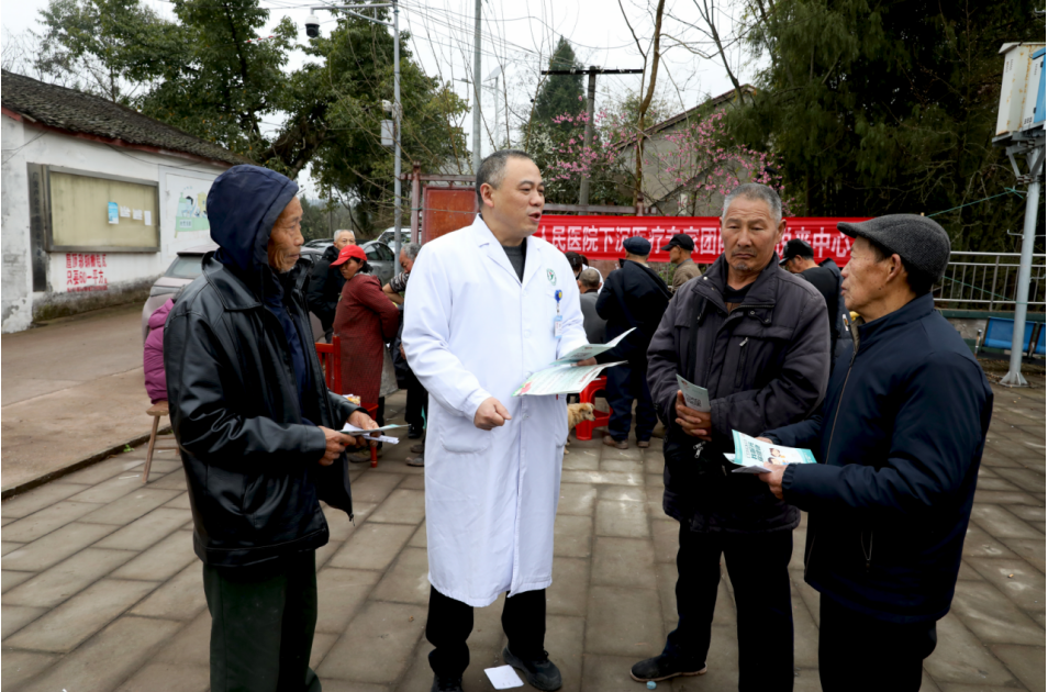 来自医供体牵头单位广安区人民医院的骨科专家、挂职悦来中心卫生院副院长的代黎明则给村民宣传春季传染病预防知识和给村民普及健康管理常识并释疑解惑。