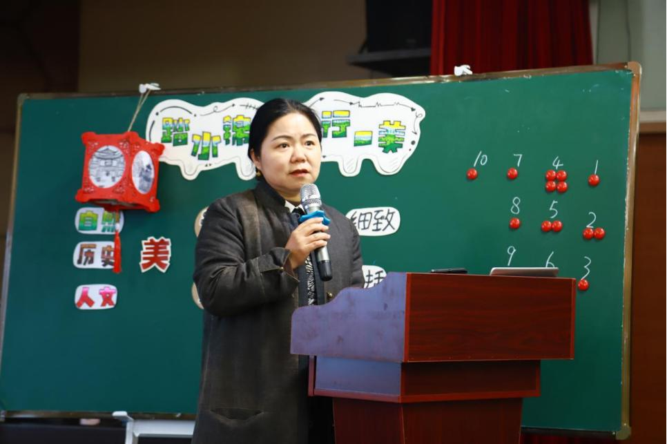 随后,成都市教育科学研究院的贾巧枝老师对教研活动进行了点评,充分肯定了两个展示课例的设计理念。贾老师指出,示范课《为人民服务》将“三进”指南融入教育教学,实现了红色教育与学科教学的深度融合;《踏水锦江》则以非遗线描为载体,探索出“课程思政+实践思政”双轨育人路径,为学校党建育人工作提供了新的思路和方法。