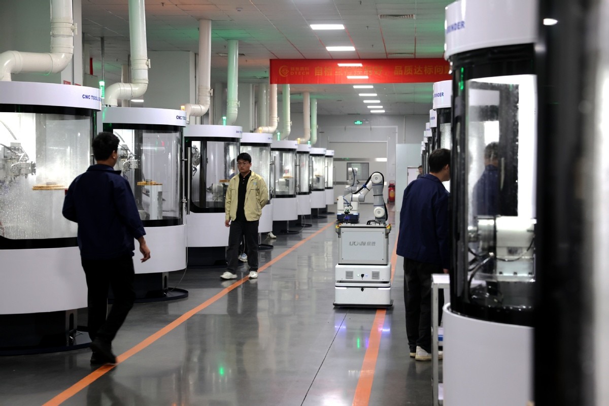 在大岭山镇,“广东机器人七剑客”之一的广东省智能机器人领域“链主”企业、广东省机器人骨干企业——广东拓斯达科技股份有限公司,正加紧测试一款智能机器人控制平台(以下简称:X5)。这是从底层硬件到上层软件实现全链条国产化自主可控的核心产品,接入具身智能大模型,赋予机器人实时决策能力。“今年,公司近200亩的新生产基地全面投产,满产后,机器人年产能将超过6万台。”广东拓斯达科技股份有限公司董事长吴丰礼表示。2025年,企业智能设备总部基地投产后,生产效率预计提升30%。这家被誉为“高端智能装备界多面手”的机器人企业,聚焦工业机器人、注塑机、数控机床三大产品,也是国内少有的实现全线覆盖的机器人企业。