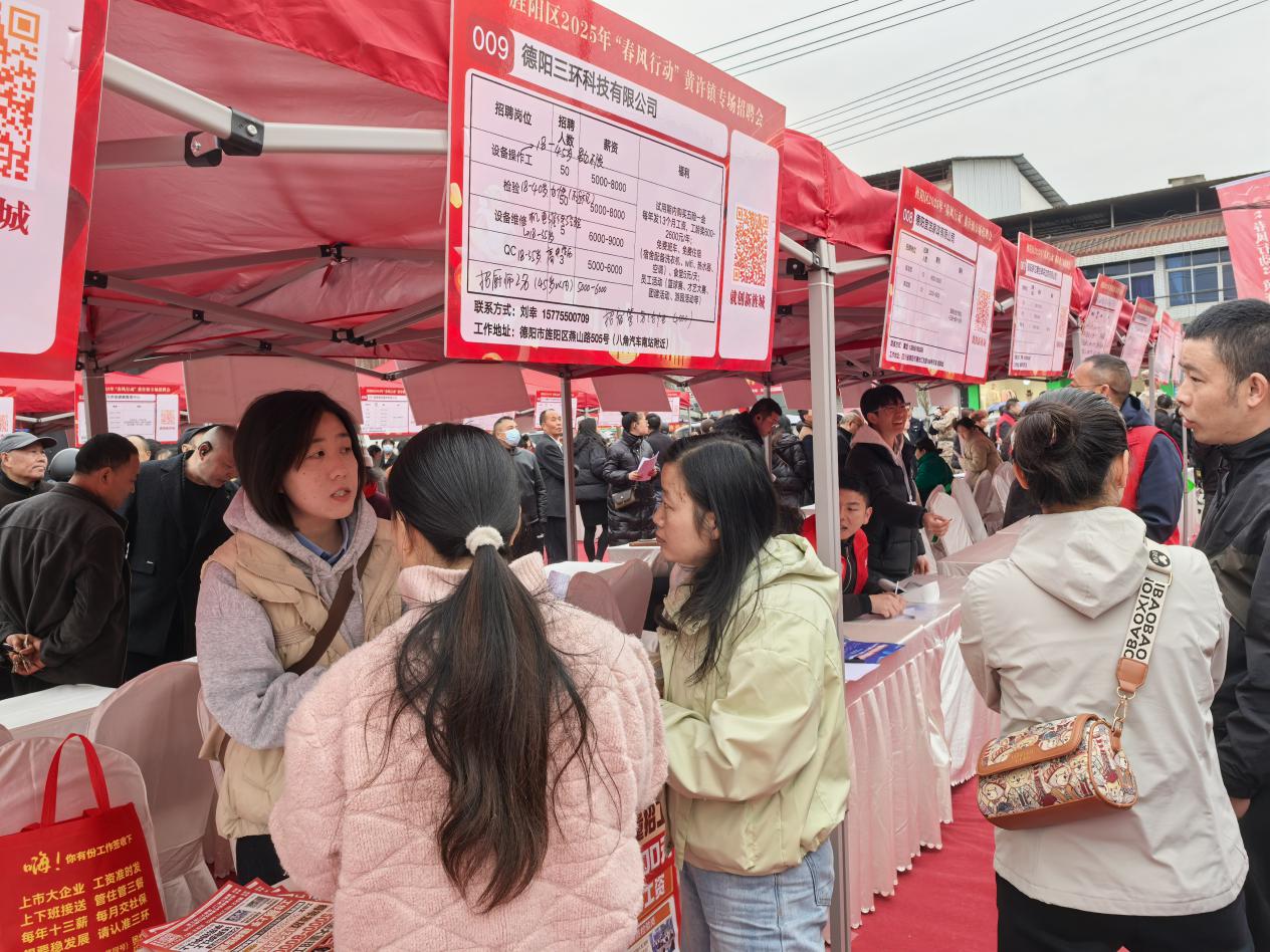 为全面深入贯彻就业优先战略,提升公共就业服务能力,促进群众稳定就业增收,3月28日,德阳市旌阳区人社局联合区总工会、黄许镇人民政府共同举办了2025年“春风行动”黄许镇专场招聘会。活动以高效对接、暖心服务为宗旨,为求职者和用人单位搭建起“双向奔赴”的桥梁。
