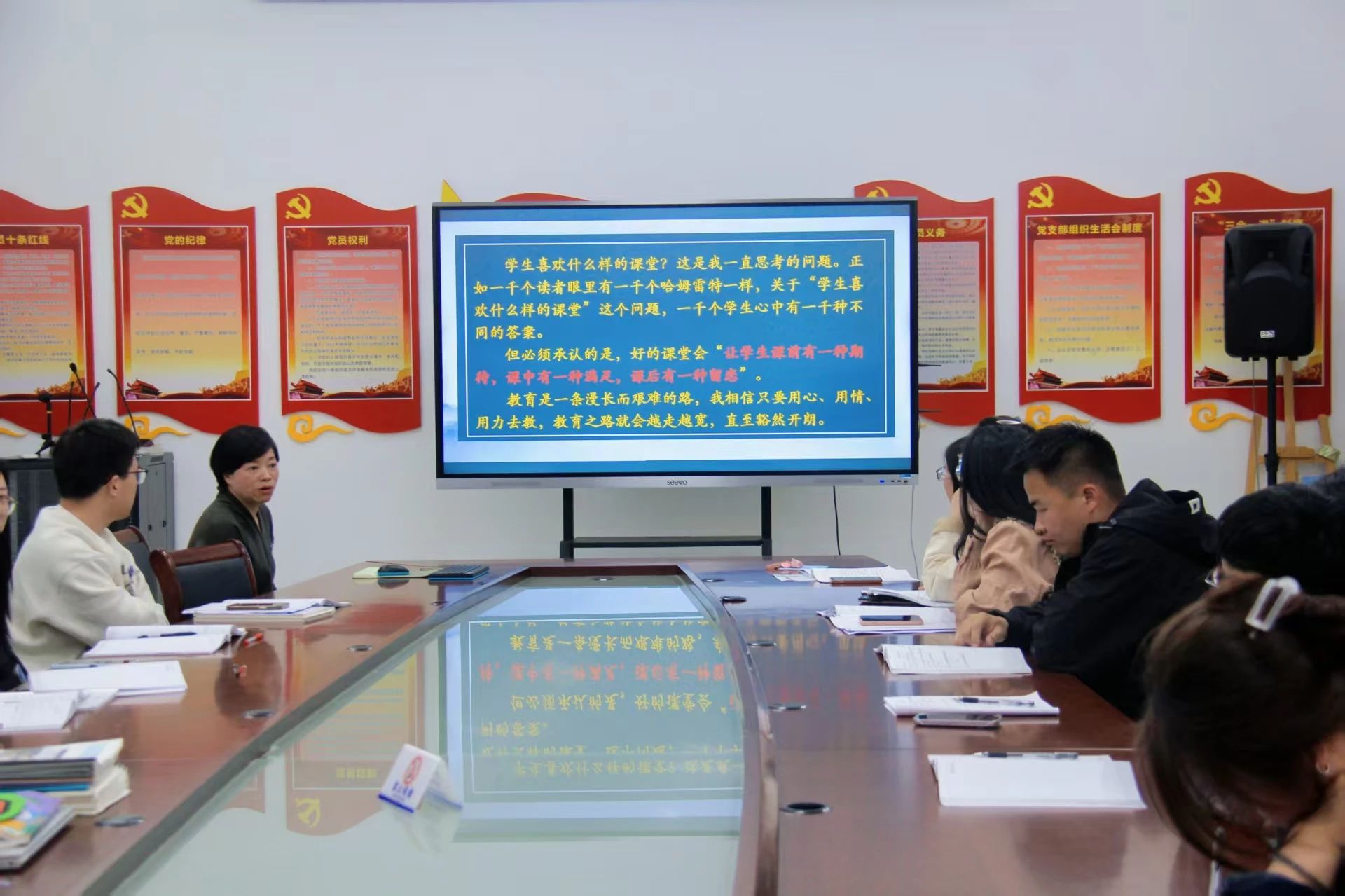 日前,浙江省遂昌育才中学青年教师研修活动——“家校问题·班级管理”系列第二次专题讲座在党员活动室开展。本次活动特邀丽水市教学名师周海红校长助理,以《课堂上如何组织学生有效的学——从课堂管理维度说开去》为主题,为学校全体90后教师带来了一场兼具理论深度与实践智慧的课堂管理盛宴。