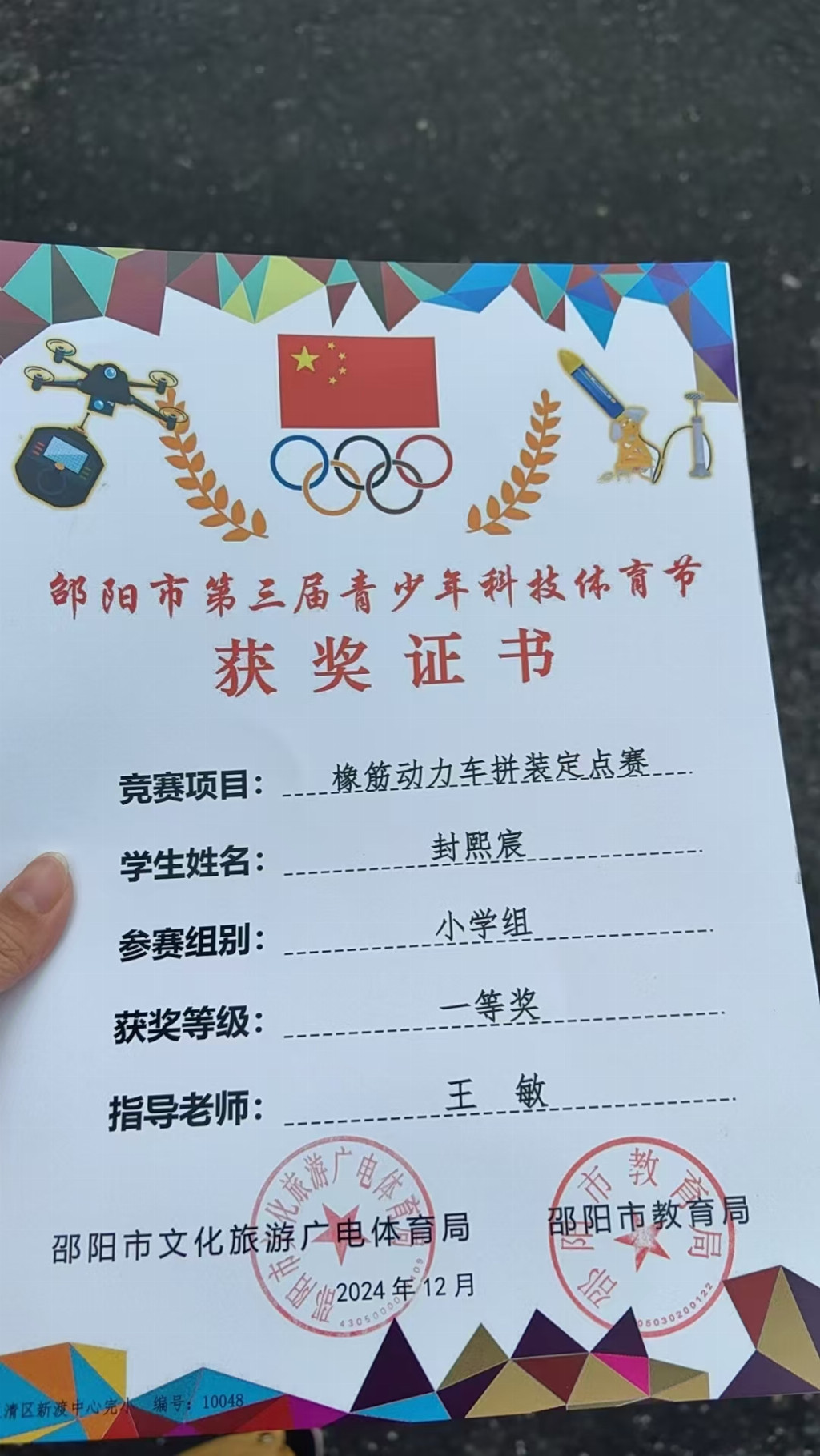 在完成教学任务的同时,她注重学生全面发展。2024年下学期的每个周末,她放弃休假,指导四年级学生封熙宸参加科技比赛,最终在邵阳市科技节中荣获一等奖,实现该校科技竞赛成绩的历史性突破。