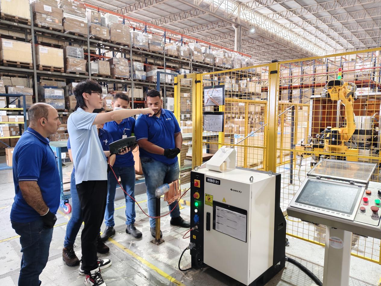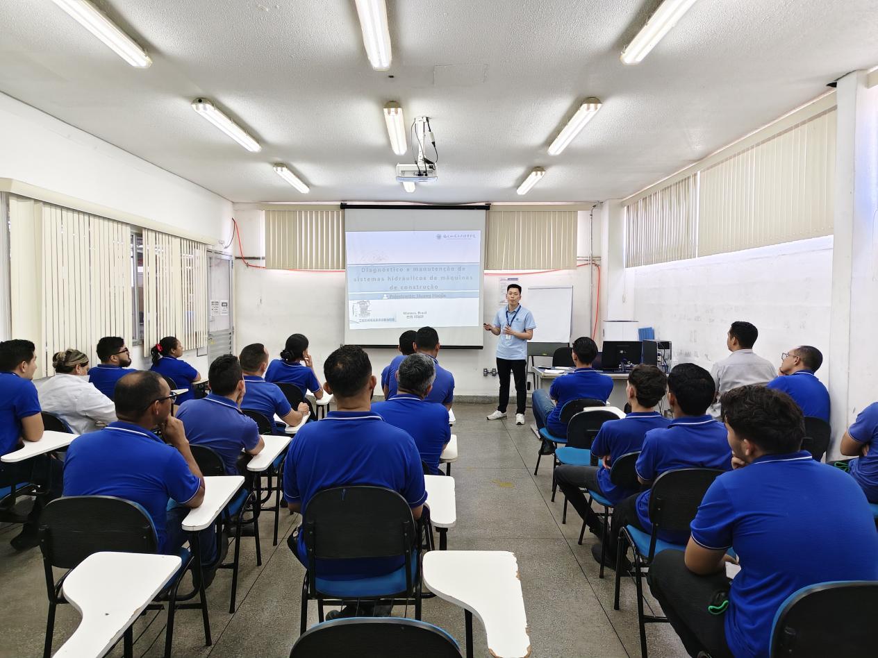 揭牌仪式后,福建船政交通职业学院教师团队为巴西基地员工开展为期6天的专业技能培训。课程设置液压驱动系统故障诊断、智能装备电气安全操作、工业机器人操作维护等模块,采用“理论+实操”双元教学模式,通过解剖液压系统、电气安全操作、电路故障排查维护等实践训练,系统提升学员智能制造设备维护核心技能,同时为当地培训中心实训基地建设提供实地指导。
