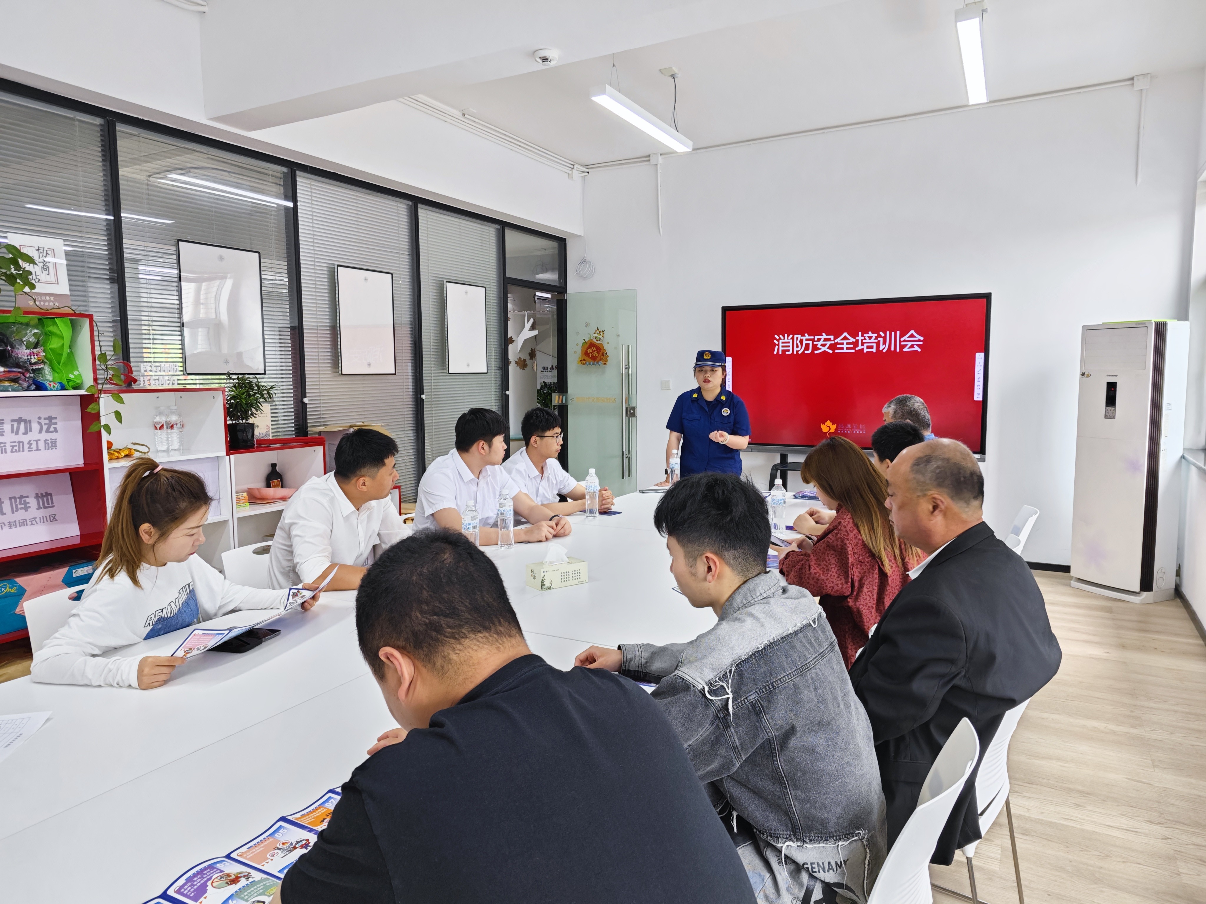 会议上由社区党委副书记周亚峰对辖区内消防安全工作做了部署,强调需压实物业、商户主体责任,明确消防设施维护、疏散通道清理、电气管控等关键任务,要求各方建立“排查-整改-复查”闭环机制。播放近期火灾事故视频,剖析“三合一”场所、违规用电等高风险隐患,警示商户杜绝侥幸心理。同时街道消防站工作人员进行系统讲解初期火灾扑救、疏散逃生技巧及灭火器使用规范,并发放了消防安全的宣传手册等资料。