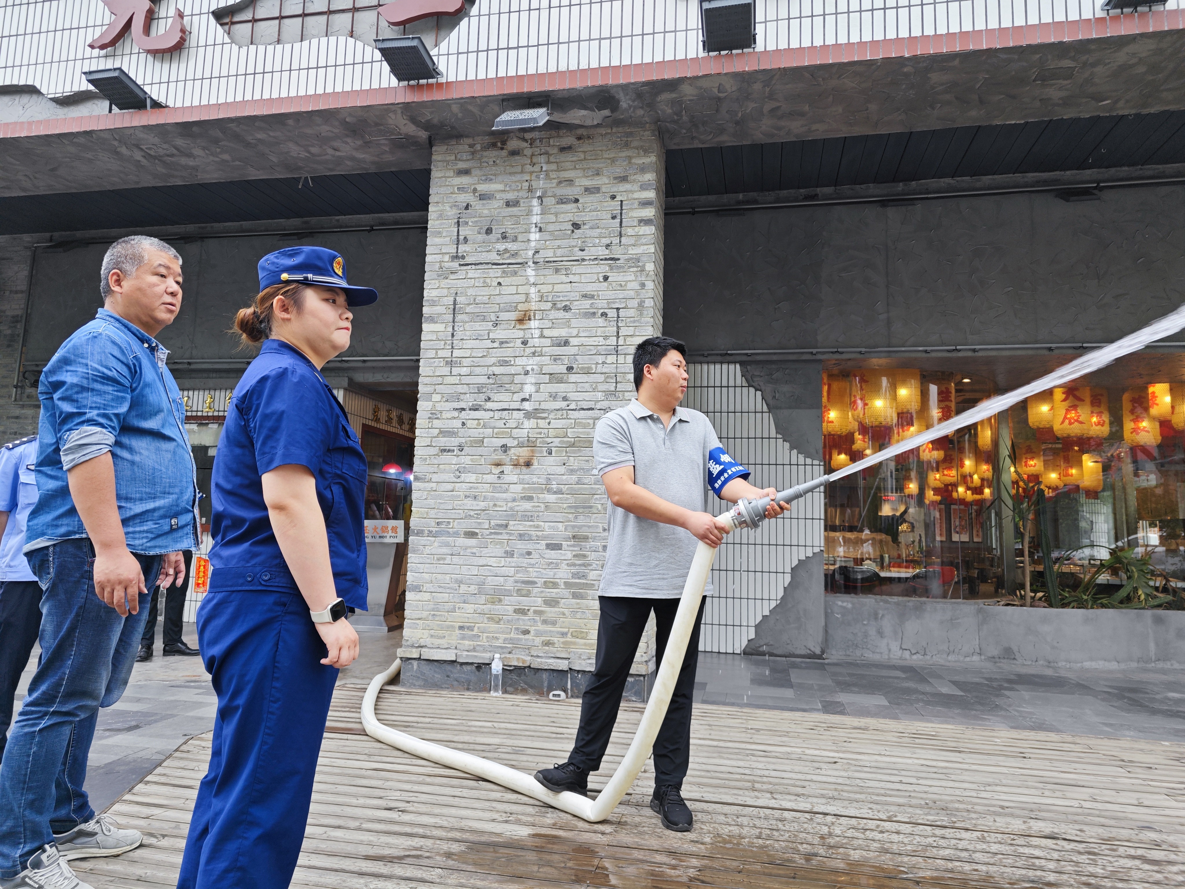 最后“蓝翎”消防安全友邻互助队深入辖区餐饮店开展消防微演练,模拟了水枪出水的场景;同时由消防站人员指导商户规范使用消防水枪,重点纠正站位不当、操作滞后等问题。本次活动进一步巩固消防安全防线,有利于共同维护辖区安全环境,为构建平安、和谐的社区环境奠定坚实基础。(朱云飞)