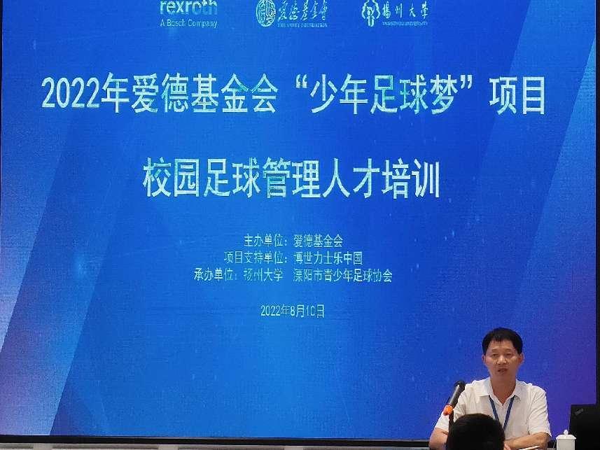 图为2022年8月黄好森参加爱德基金会“少年足球梦”项目校园足球管理人才培训班并代表发言
