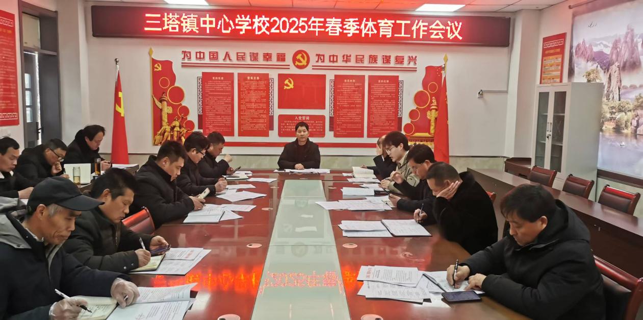 图为2025年春季黄好森主持召开三塔镇中小学体育工作会