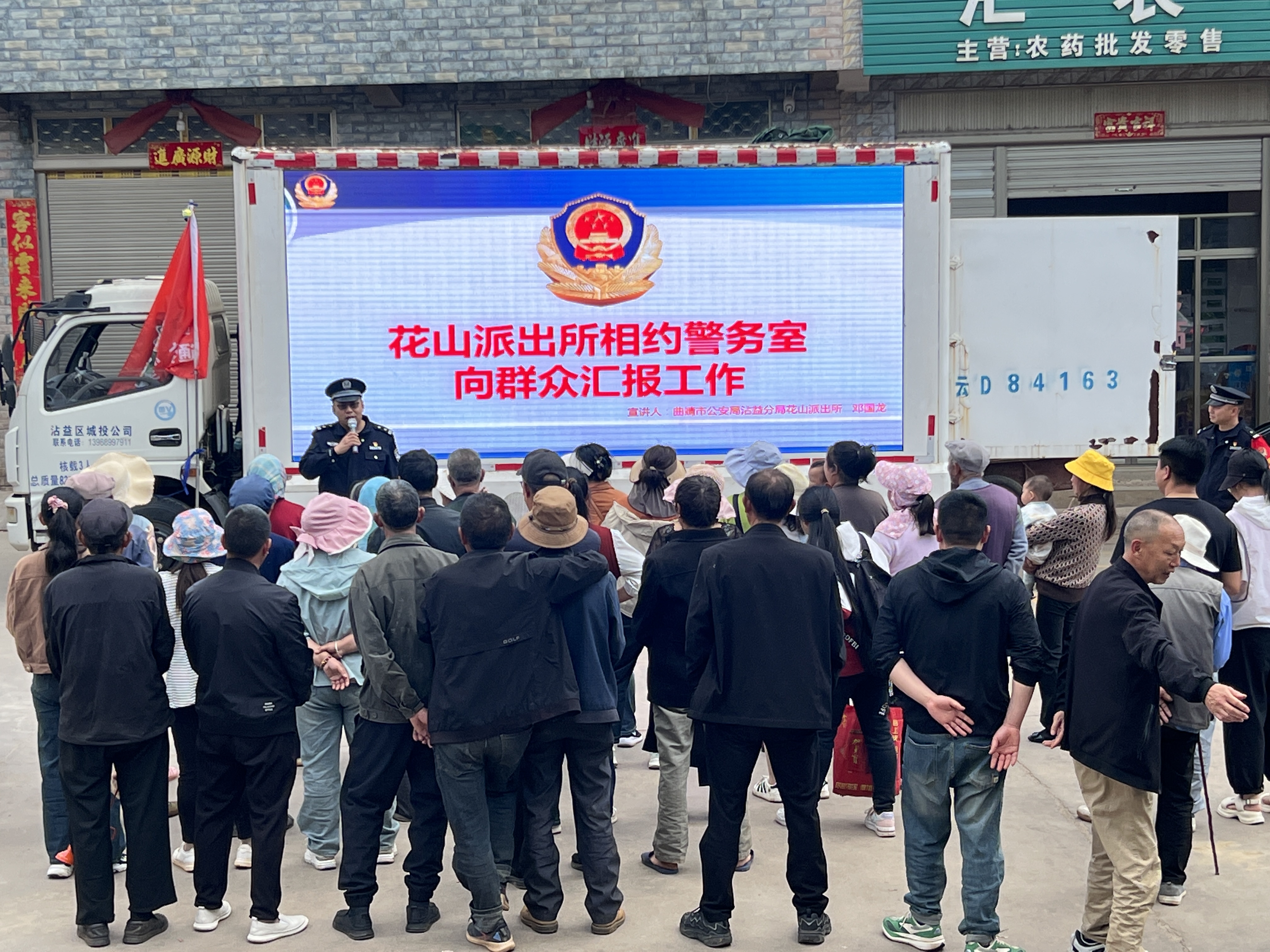 “老乡们,我将发生在辖区内的盗窃案件及调解的纠纷,给大家做个通报。案件成功告破,但做好防范工作也很重要……”社区民警手持话筒,身后屏幕实时切换辖区警情提示和防盗窃、防电信网络诈骗等安全防范要点,让群众直观地感受平安建设成果。