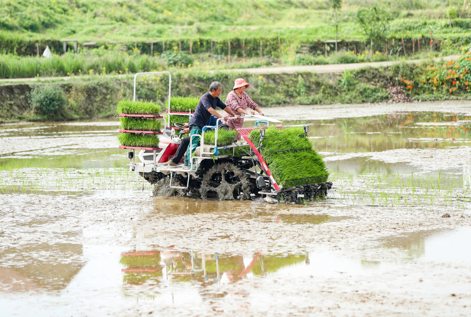 目前正值川东地区秧苗移栽关键时节,华蓥市的农民在农技人员的指导下奔忙田间,利用旋耕机、插秧机等农机具整理农田、栽插秧苗,新质生产力绘出春耕新图景。(邱海鹰)