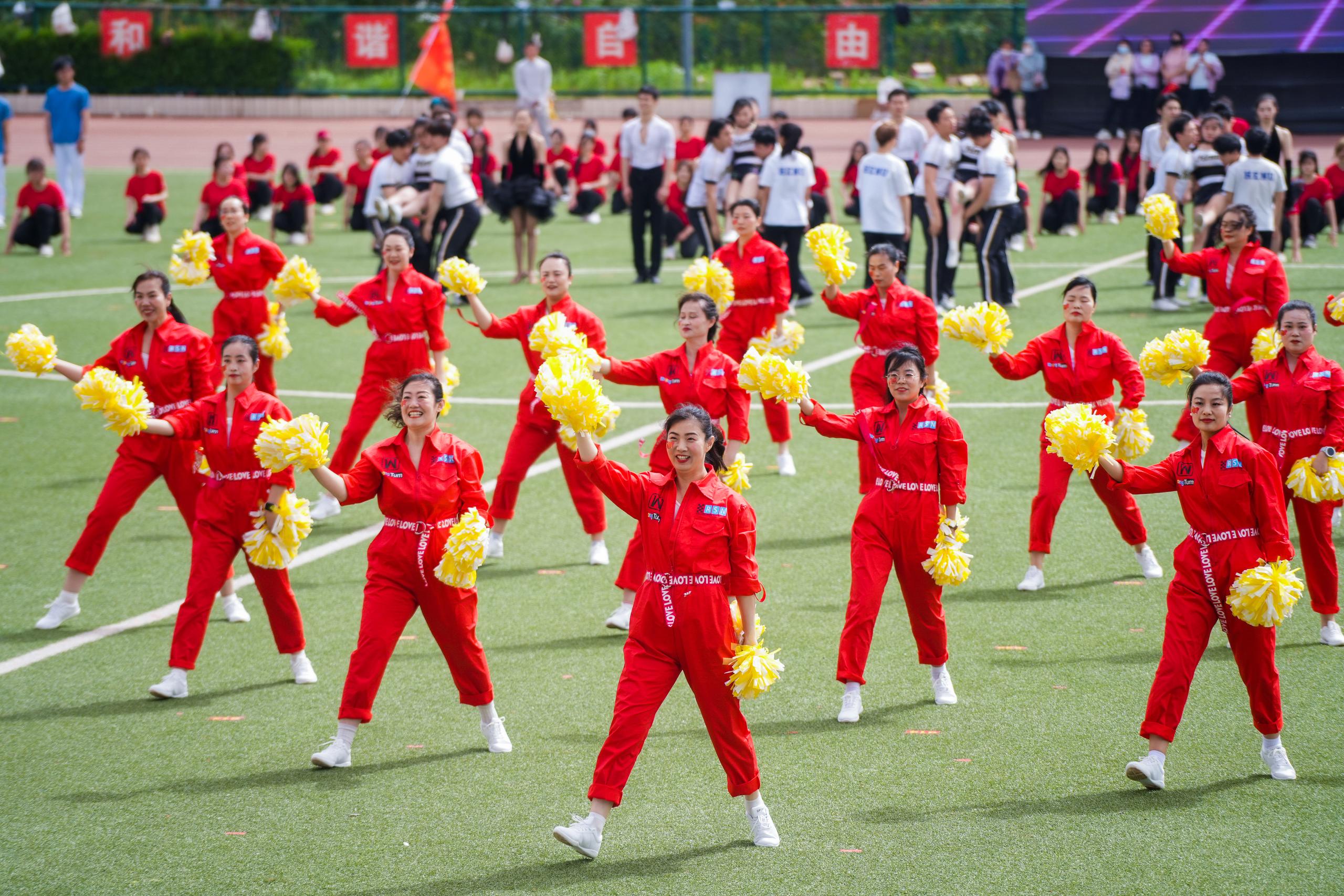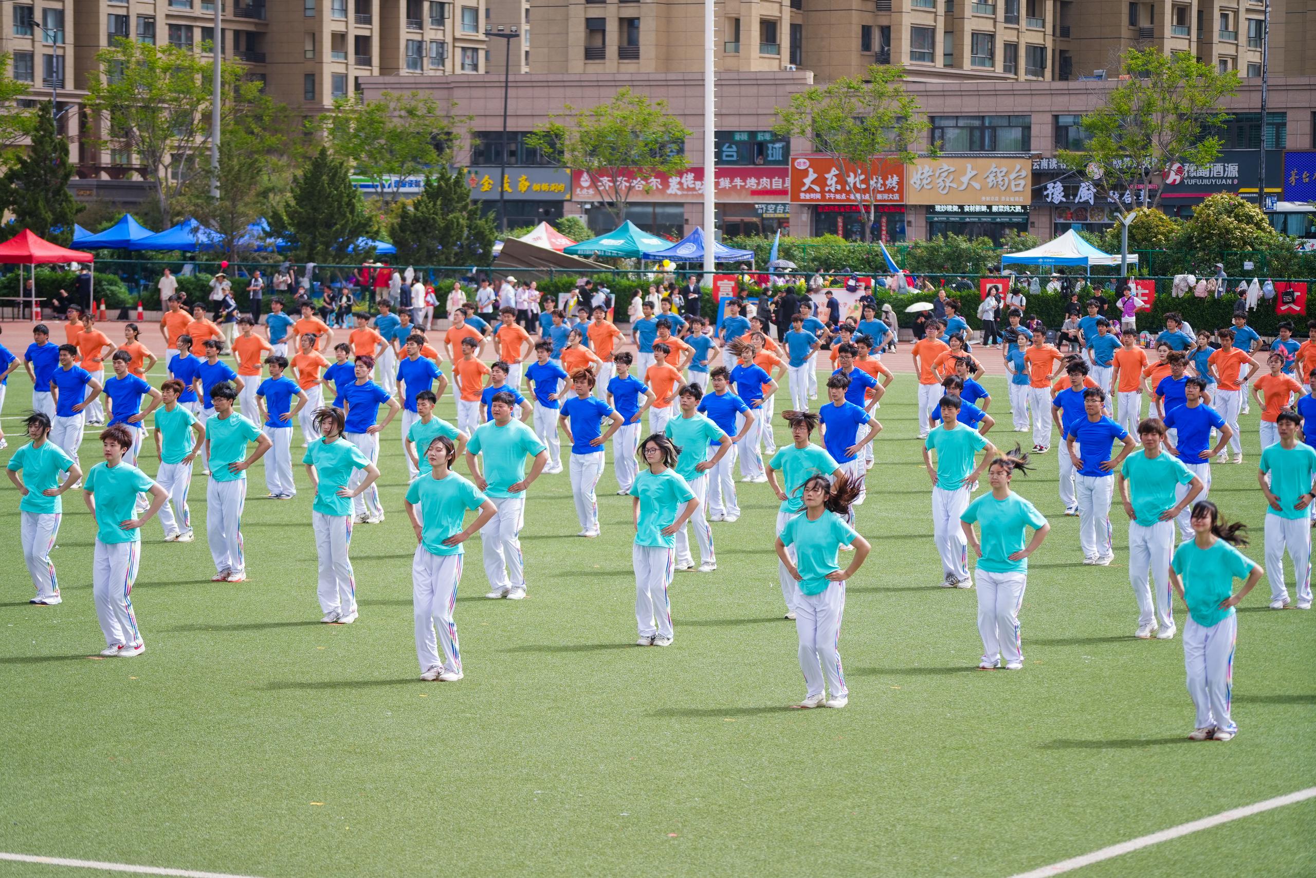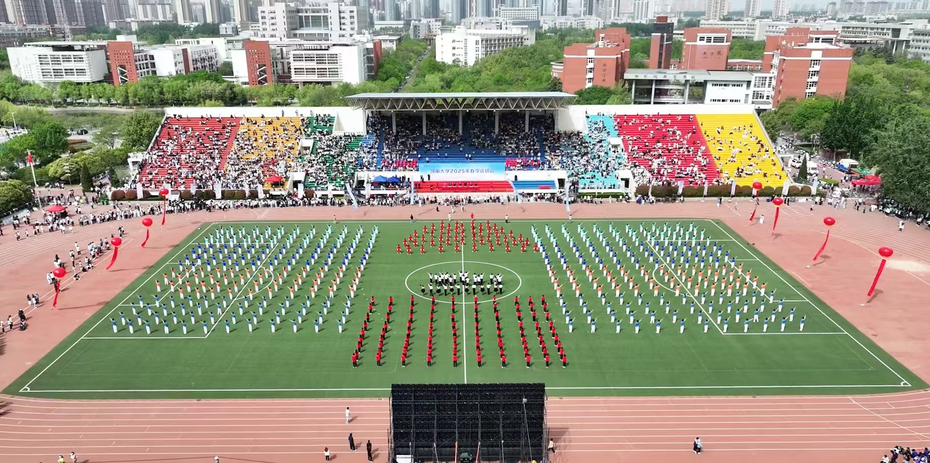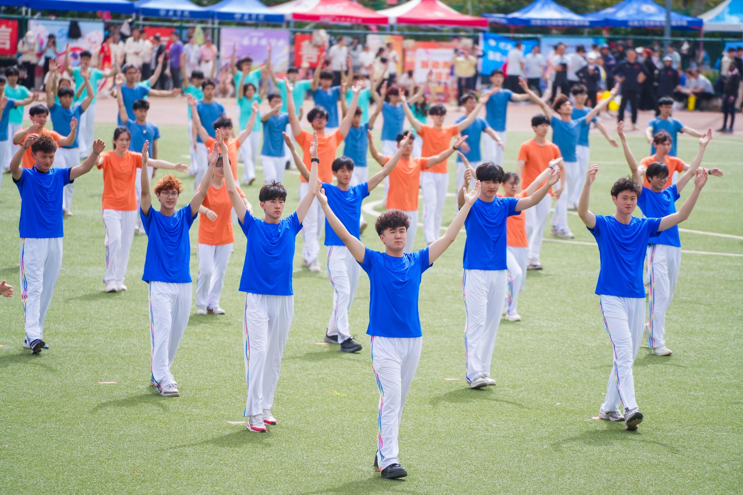 在2025年河南大学春季运动会开幕式的现场,由体育学院400名学子在《奋勇争先》节目中,演绎了不同时代的广播体操,让我们跨越时空,唤起了时代的记忆,并以此致敬中华体育精神,献礼百年河大“以体育人”的光荣传统。