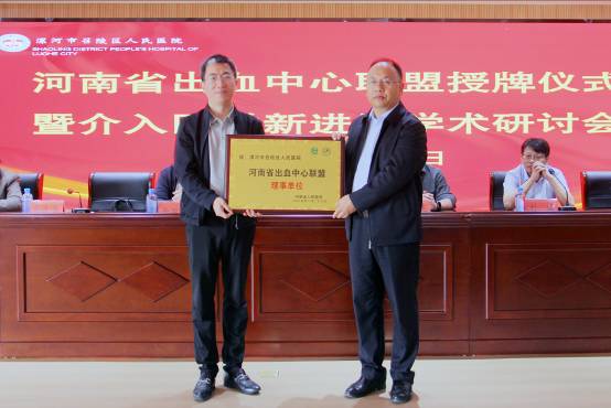 河南省人民医院综合介入科副主任曹广劭为召陵区人民医院授牌。
