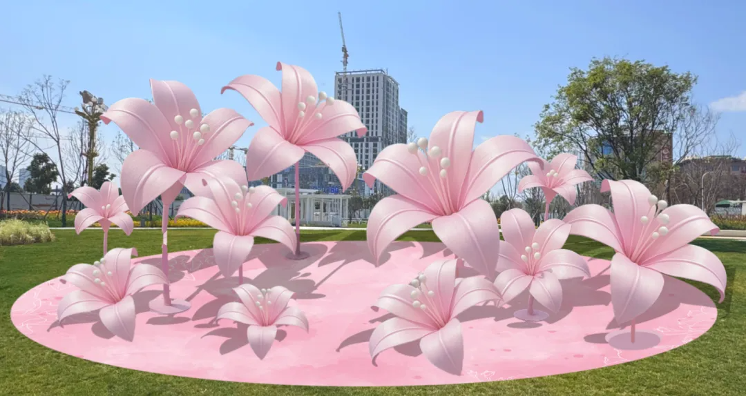 装置内容:选取云南八大名花中的“百合”为设计原型,将花朵的尺寸放大至2米~3米,可供游客在花朵下穿行,并辅以夜间灯光效果,结合艺术装置制作工艺,展现花卉从“交易品”到“艺术品”的转变,彰显云南花卉的艺术潜力。