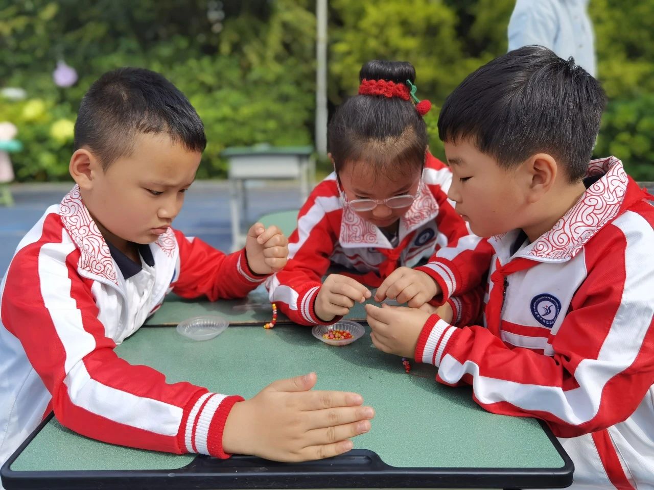 二年级的孩子们用灵巧的双手,编织出劳动的精彩。在“巧手环环乐”个人赛中,小选手们全神贯注地串珠,每一颗珠子的串联都凝聚着他们的专注与努力。团队赛更是将比赛推向高潮,孩子们分工明确,从挑选珠子到编织手链,再到检查质量,每一个环节都井井有条。10分钟的时间里,一条条样式新颖、色彩斑斓的手链新鲜出炉,凝聚着团队成员的智慧与汗水。
