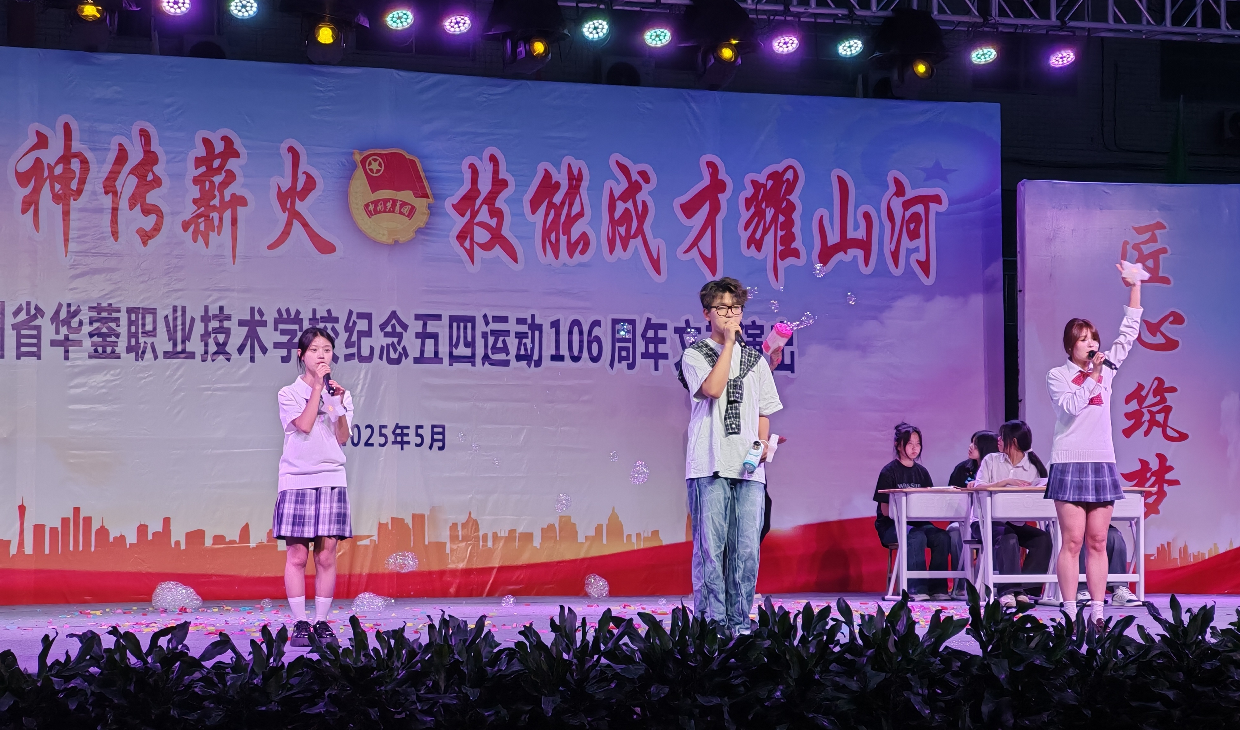 为纪念“五四运动”106周年,激励青年学子传承红色基因、勇担时代使命5月5日晚上,华蓥市职业技术学校举行了以“五四精神传薪火 技能成才耀山河”为主题纪念“五四运动”106周年文艺演出,全校师生欢歌喜舞庆五四青年节。