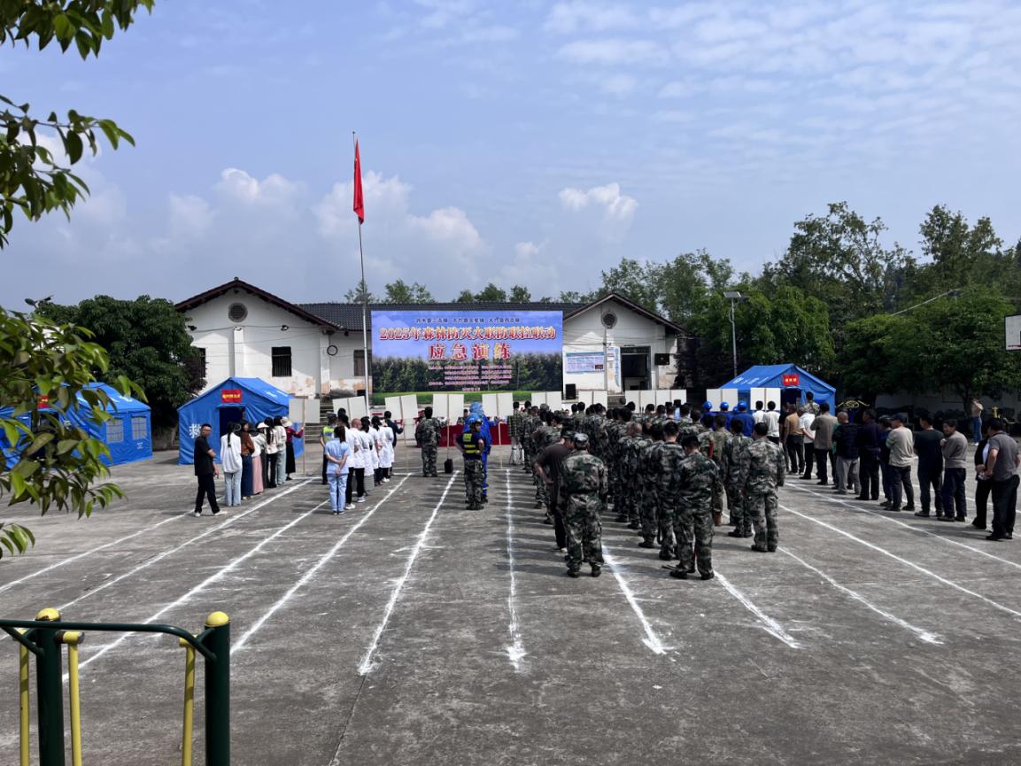为全面提升跨区域森林火灾协同处置能力,全力筑牢毗邻地区的森林安全防线,近日,邻水县三古镇联合大竹县文星镇、四合镇,在三古镇东风村精心组织开展了2025年森林防灭火联防联控联动应急演练。此次演练吸引了共计110余人参与,以高度实战化的标准对跨区域应急响应机制进行了全面检验。