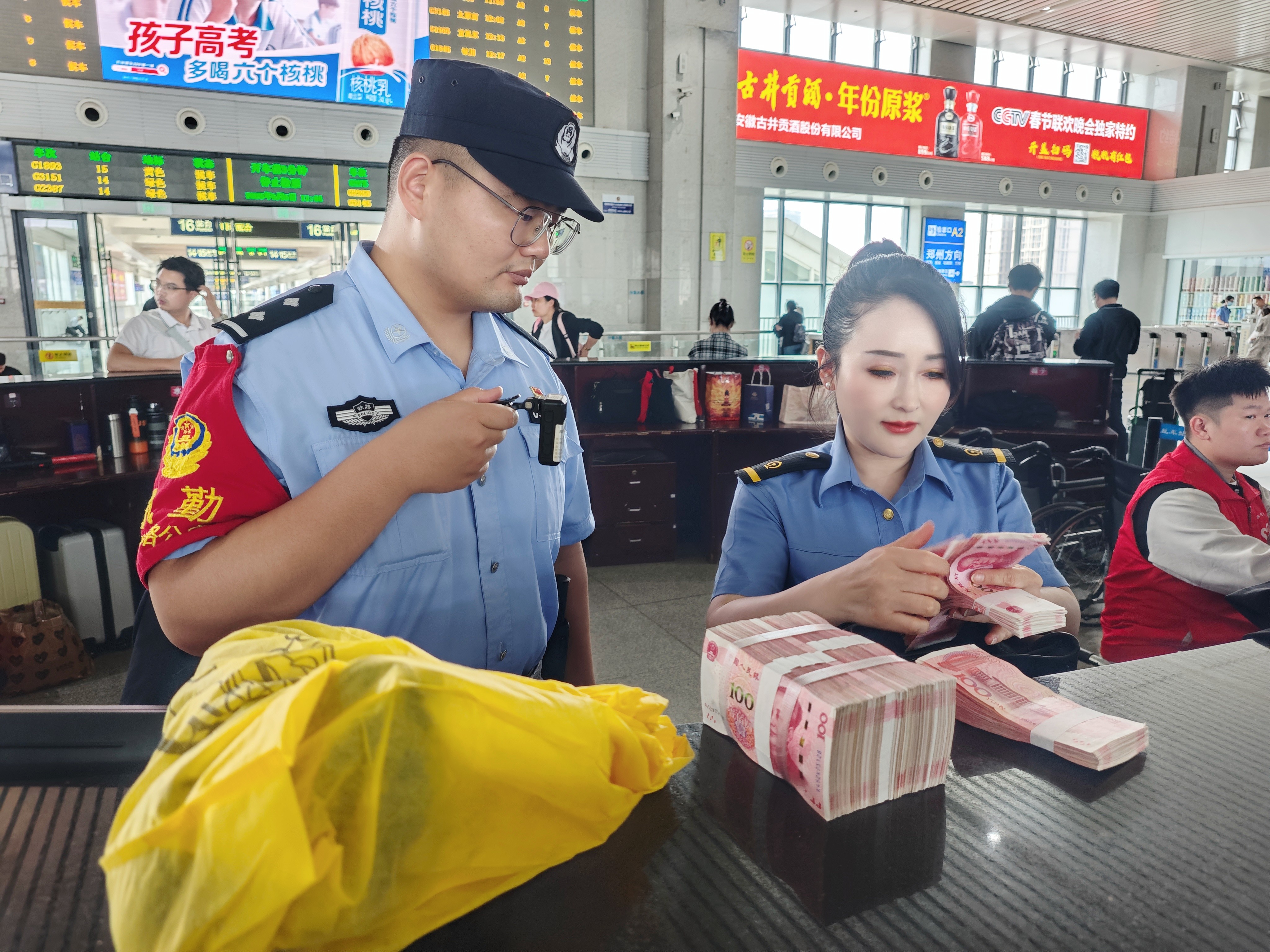 当日10时许,旅客郑先生心急如焚地求助,称在商丘站A2候车区遗失内装12万现金的黑色皮包。正值“五一”返程高峰,候车室人头攒动。孟园园接到消息后立即行动:先在失主描述区域逐座排查,随后询问周边旅客,未果后扩大搜索范围,最终在10米外的座椅上发现无人认领的黑色皮包。为确保财物安全,她第一时间联系铁警到场,共同清点核对,确认12万元现金分文未少。