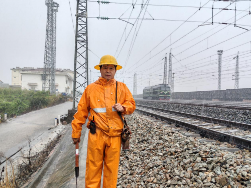 5月1日,广铁集团肇庆工务段线路工冒雨对线路设备进行巡查,保障列车运行安全。谭兴达 摄