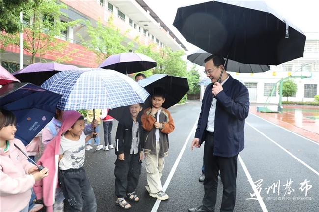 在仙子脚镇沙田学校,唐超学走进教师办公室、食堂,深入了解学校办学条件、师资力量及师生生活保障等情况。他指出,要持续优化教育资源布局,加强乡村教师队伍建设,促进城乡教育均衡发展,不断提升教育教学质量,持续满足人民群众对优质教育资源的需求。要充分利用课间“15分钟”,把课间的“小美好”转化为学生全面成长的“大舞台”,让孩子们享受更加健康快乐的校园生活。要严格落实师生同餐制度,把好校园食品安全关,让“一锅菜”好吃又健康。