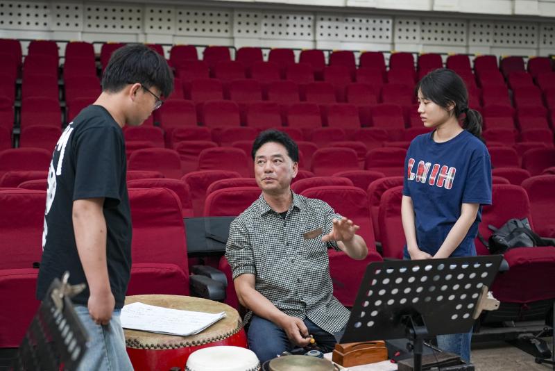真正的精彩,从跟随平调团的巡演开始!象山西周镇、宁海县黄坛镇、天台白鹤镇……每一个地名都变成了戏曲传承的鲜活注脚。在后台,演员们脸上油彩未干,就热情地和团队成员分享剧目创作背后的故事。为了还原一段失传已久的唱腔,老艺人们翻遍古籍、四处寻访;为了让新编的剧目更贴近年轻观众,剧团反复打磨台词与舞台效果。学生们抓住机会,对多位老艺人进行了深度访谈,用摄像机和笔记本详细记录下他们的从艺经历和对宁海平调的独特理解。他们还帮助剧团整理了部分珍贵的唱腔乐谱和剧本资料,将其数字化存档。