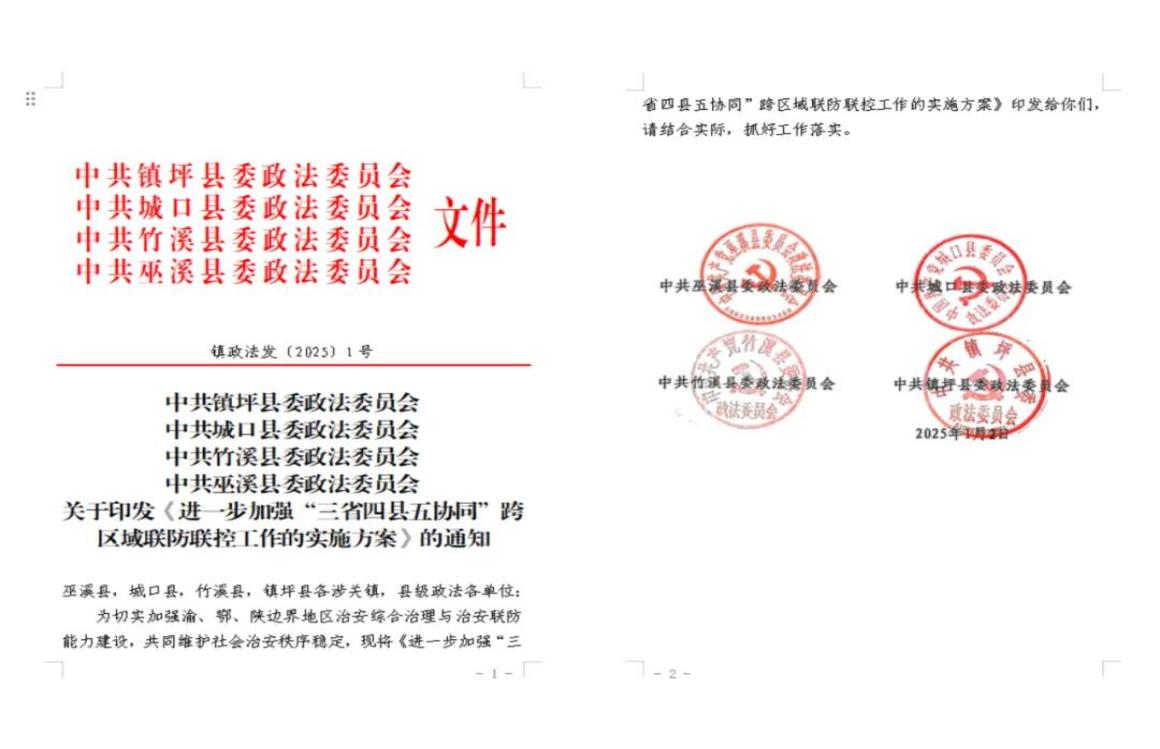 近年来,镇坪县打破地域、人员等关键制约因素,与相邻的重庆市巫溪县、城口县和湖北省竹溪县不断加强交流合作,共同探索建立“三省四县五协同”的跨区域联防联控工作机制,构筑“全域统筹、系统集成、联防联治”的平安协作体系,有力维护了跨省边界区域的和谐稳定。2024年,镇坪县刑事治安案件和矛盾纠纷总量分别下降52%和48%。边界地区连续10年无重大治安、刑事案件发生。