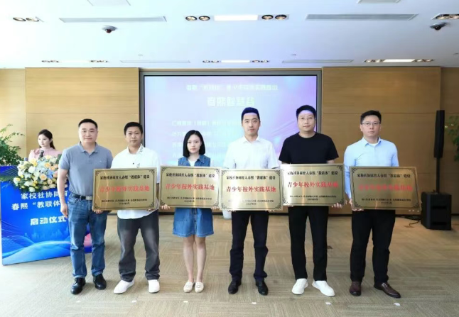 教联体建设不是一场“独角戏”,而是一曲“大合唱”。紧接着,各部门相关负责人为首批校内成长学院以及青少年校外实践基地授牌,激励各参与教联体建设的企事业单位牢固树立担当精神,强化主体责任意识,共同编织一张覆盖课堂内外、贯穿成长全程的“15分钟教育生态圈”。