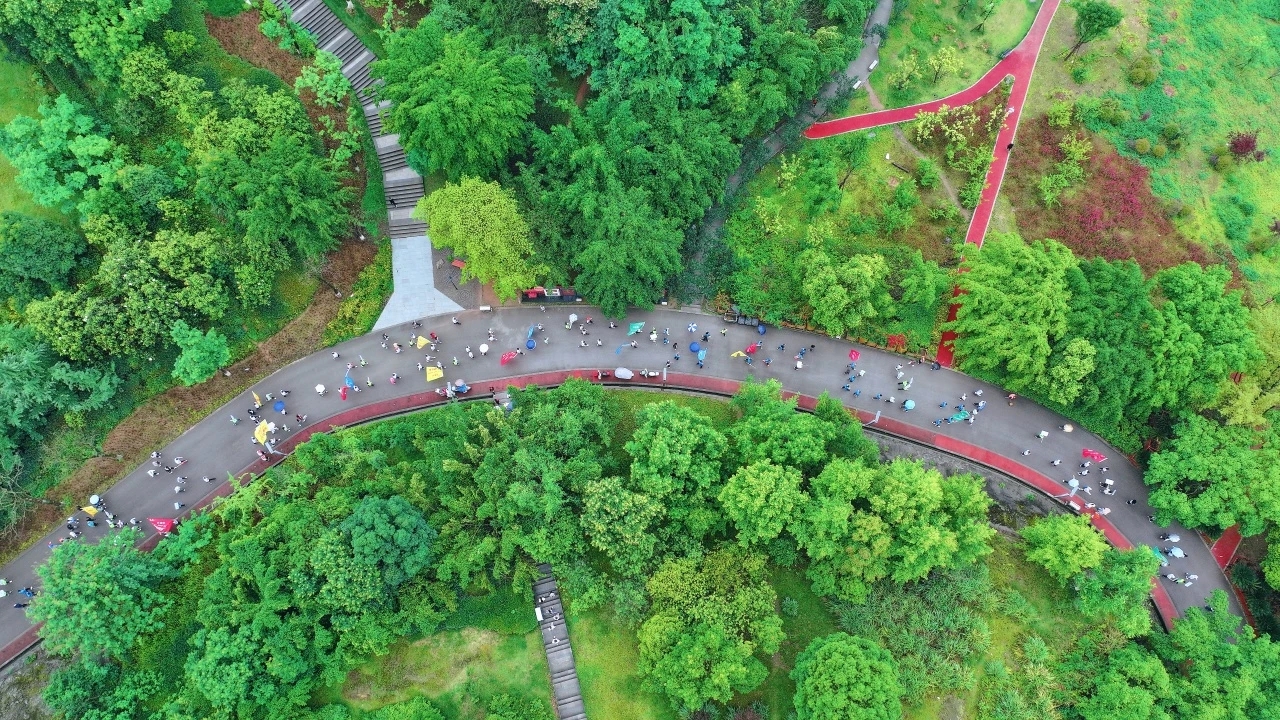 健走过程中,参赛队员们沿着银鼎山公园健康步道一起健走,大家精神饱满、昂首阔步,在绿意盎然的公园,享受运动带来的乐趣。