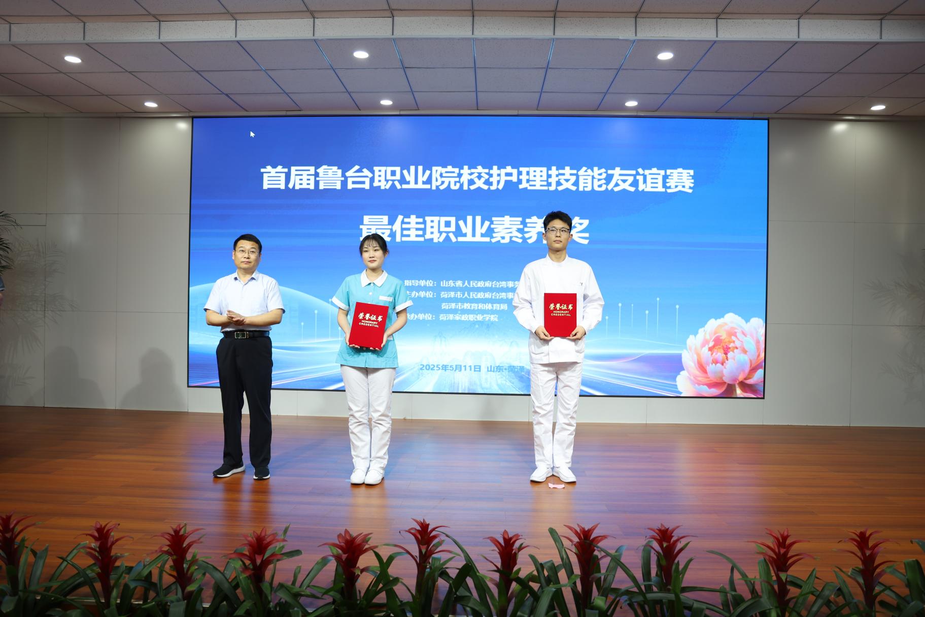 5月11日,首届鲁台职业院校护理技能友谊赛在菏泽家政职业学院举行。学院党委书记刘芸,菏泽市人民政府台湾事务办公室四级调研员翟金哲,菏泽市教育和体育局党组成员、副局长王斌,菏泽市人民政府台湾事务办公室科长李静,中国国际科技促进会医药卫生教学与研究工作委员会执行秘书长、赛项裁判长牟琳,学院领导董会龙、汲永亮、刘加启,单县人民政府相关领导魏广伦出席,来自鲁台8所高校的100余名选手、领队和裁判员参加本次活动。