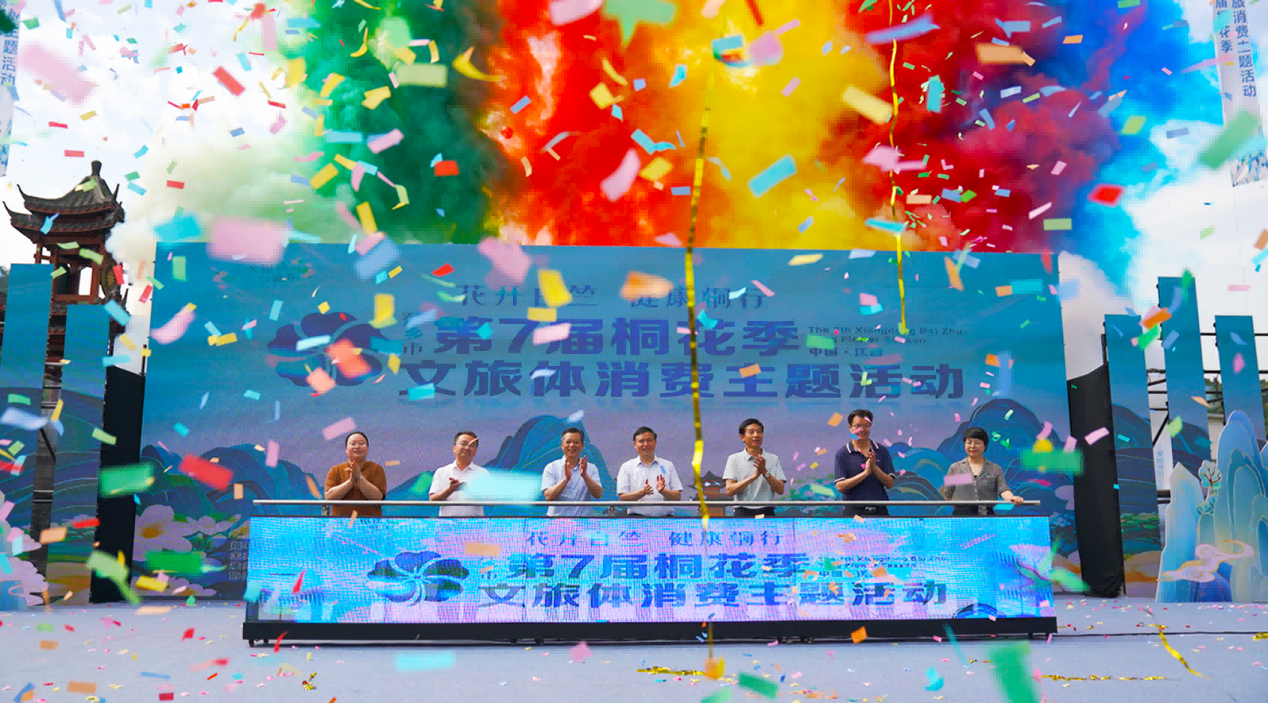 5月10日,"花开白竺·健康桐行"第七届桐花季文旅消费主题活动盛大启幕,万亩桐林化身为沉浸式体验的乐园,让游客在"赏花经济"中感受乡村振兴的蓬勃脉动。