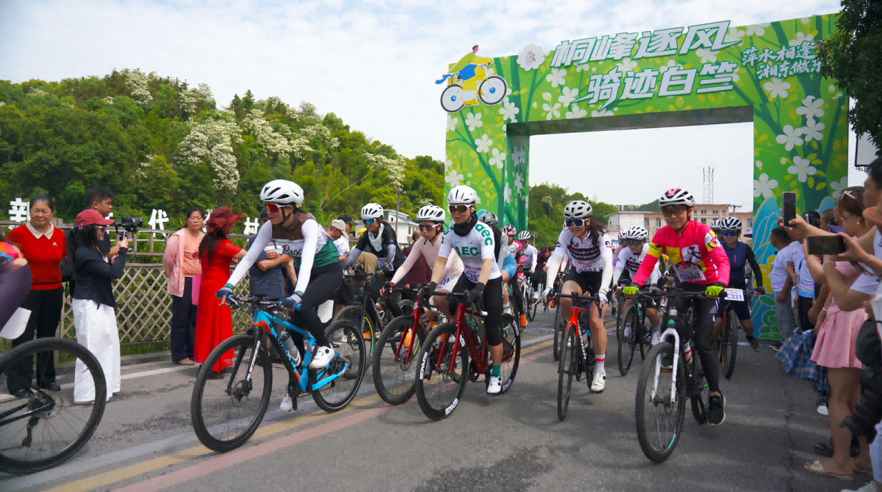 随着发令枪响,近百名山地自行车选手如离弦之箭穿行在"花海赛道",车轮碾过铺满落花的柏油路,带起细碎的花瓣在空中起舞。在江西省萍乡市湘东区白竺乡大丰村至上江村7公里的路段上,选手们一边感受比赛的紧张刺激,一边欣赏沿途的秀丽风光,真正将速度与激情融入到大自然的美景之中,展现运动的活力与激情。