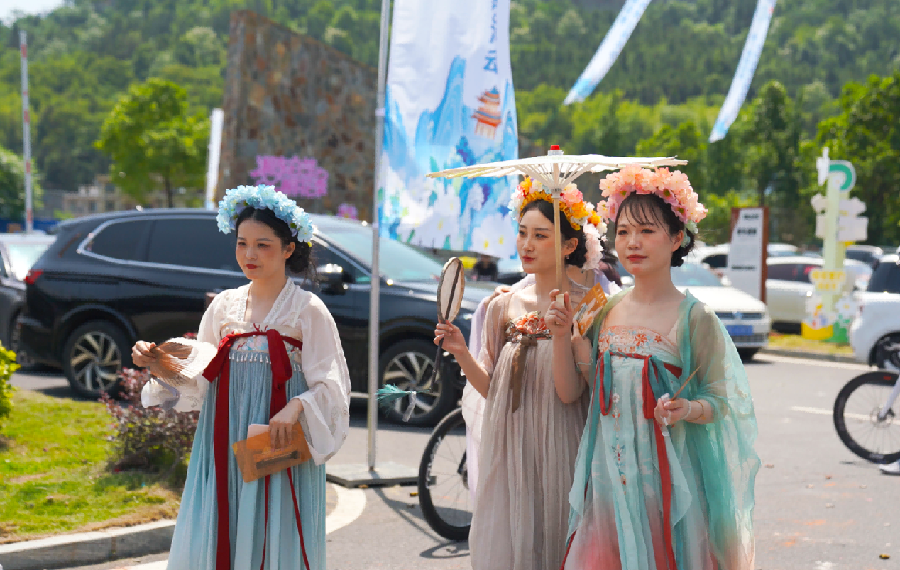 桐花燃脂计划也吸引了众多健身爱好者参与,爆燃的气氛让他们积极投入到健康运动中。还有“桐花仙子”身着汉服,头戴桐花花环,带游客穿越千年,感受风雅古韵。桐花集市则汇聚了非遗手作、国风工艺、美食等众多好物,游客们徜徉其间,流连忘返。桐花谷水上营地里,赣湘边桨板友谊赛将古老的瑜伽体式与时尚的桨板运动相结合。选手们在水上乘风破浪,奋楫向前,为观众奉献了一场激烈的水上运动赛事。