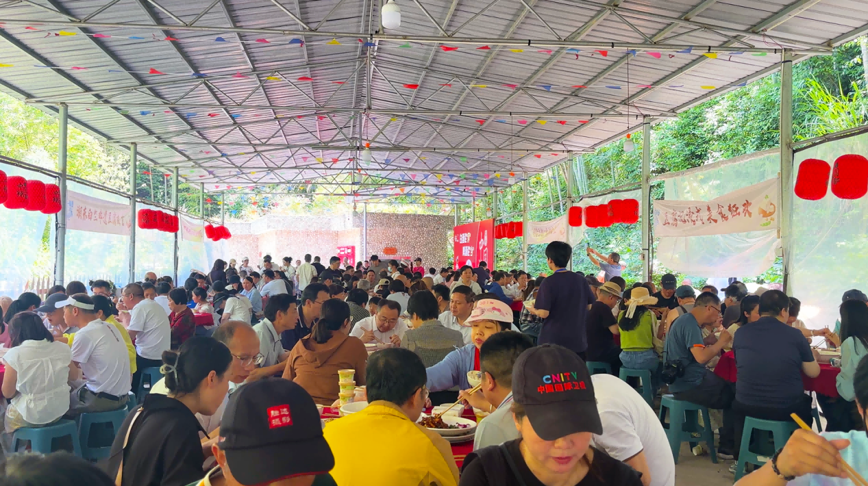 山脚下的百人豆腐宴现场,烟熏豆腐炒肉、双椒豆腐块、凉拌豆腐丝……一道道色香味俱全的豆腐佳肴让人垂涎欲滴,游客们围坐一堂,品尝着地道的农家美味。这些豆腐菜品不仅展示了白竺乡的传统烹饪技艺,更融入了当地的特色食材,让游客在品味美食的同时,也感受到了乡村文化的独特魅力。