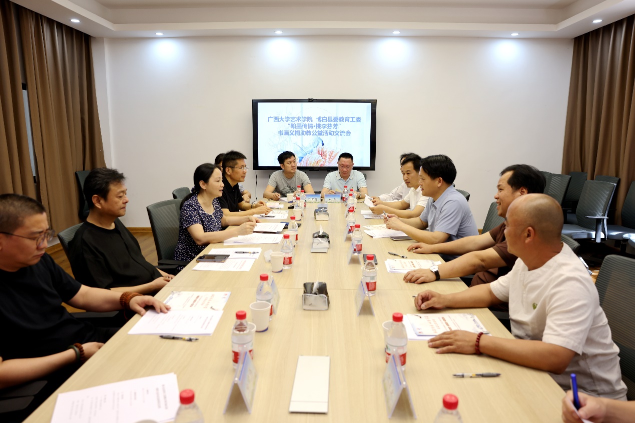博白县委常委、宣传部部长沈俊雨带队到广西大学艺术学院开展“翰墨传情·桃李芬芳”书画作品义捐助教公益活动约稿工作