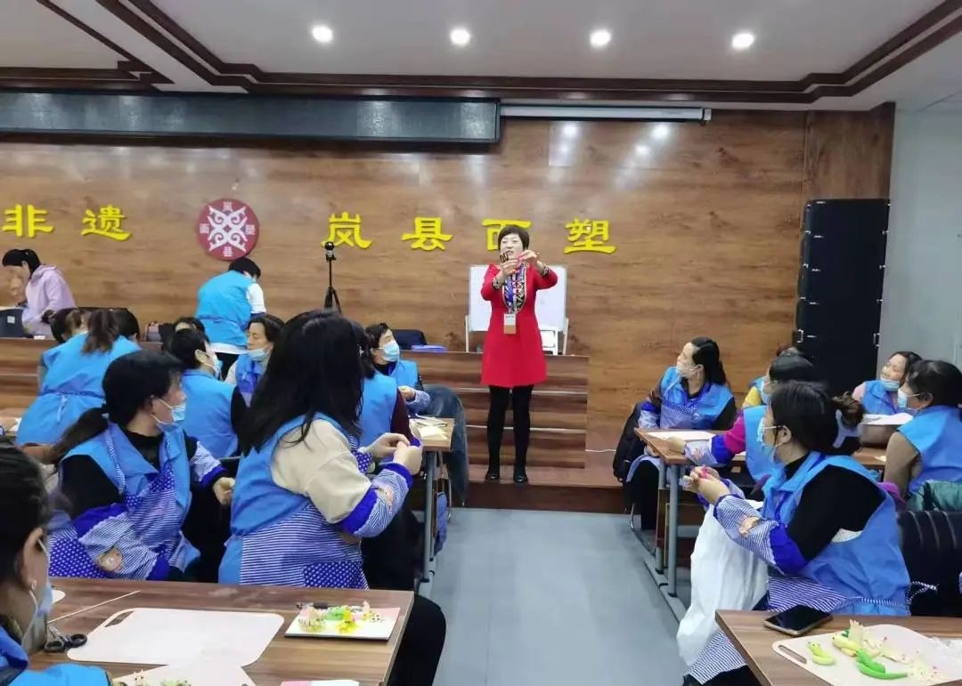 为把“岚县面塑”这张非遗名片全县推广、永久传承,2019年该县创建了“岚县面塑制作”市级劳务品牌,采用“普惠培训+精英培养”双轨机制,年均免费培训易地搬迁群众及爱好者600人,每年选拔150人(其中建档立卡贫困户占比65%)进行3个月的强化实训,就业转化率达82%。同时,积极开展“面塑进校园”标准化课程体系,开发《指尖上的历史》等互动课程,年均培训学生500人次,覆盖30所中小学。并在12600㎡的面塑主题公园增设非遗体验区,年接待研学游客2万人次。