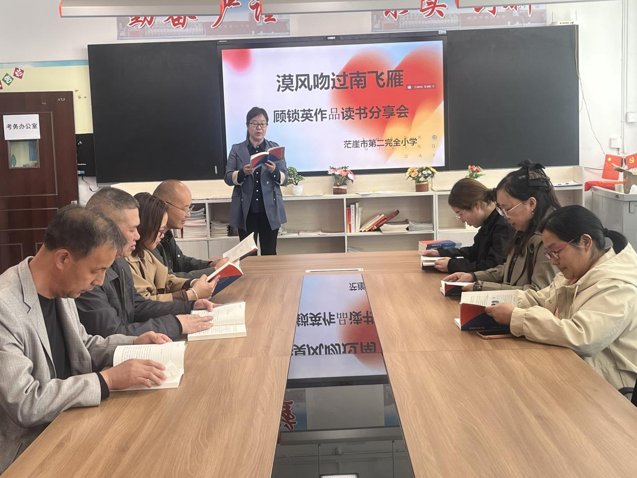 茫崖市另一所偏远的第二完全小学却是利用课余时间安排了一场特殊的新书阅读分享会。此次由李芳老师积极组织安排、孙海敏老师、陈萍老师大力协助配合的活动得到张河安校长的鼎力支持。张河安校长亲自带领校领导班子及部分师生参加。