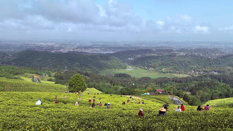 谷雨时节,明月山脉云雾缭绕。在川渝交界的四川省广安市邻水县白茶基地,万亩茶园随山势起伏如碧浪翻涌,茶农们身挎竹篓穿梭于翠绿茶垄,指尖翻飞采撷嫩芽。这片承载着东西协作深情的生态茶园,正通过“绿叶金钥匙”开启乡村振兴新篇章。