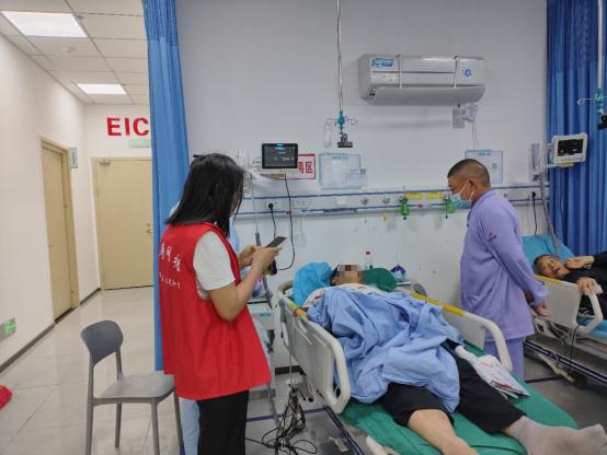 随后,网格员协助医护人员将老人送上救护车,并陪同前往医院,协助办理挂号、检查等手续。医生告知老人意识不清,无法联系到家属,身上也没有手机,网格员等待老人检查出来,慢慢有些意识后,轻声询问道:“叔叔你叫什么名字?你家人的电话记得不?”老人告诉了其儿子的电话。网格员立即联系他儿子,告知了老人的情况,让他立即到医院,并安慰稳定老人的情绪,确认得到妥善救治后才离开。