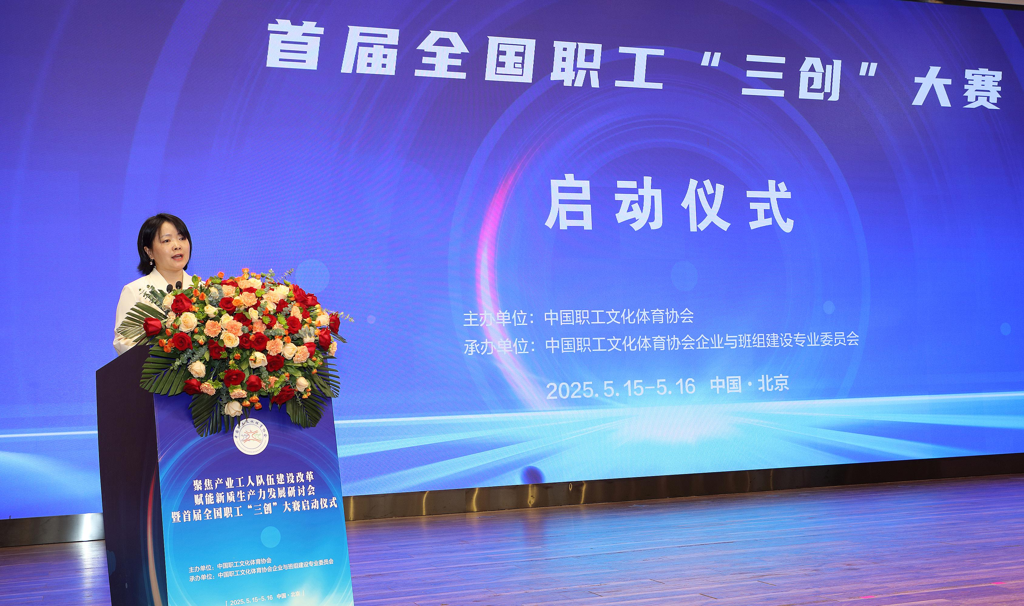 5月15-16日,由中国职工文化体育协会主办、企业与班组建设专业委员会承办的“聚焦产业工人队伍建设改革赋能新质生产力发展研讨会”暨首届全国职工“三创”大赛启动仪式在北京隆重举行。中国职工文化体育协会会长李守镇、人民工匠许振超、中华全国总工会兼职副主席高凤林分别发来视频贺辞。来自全国各地的工会与劳模工匠代表150余人齐聚合力,共同启动首届全国职工文化创意、岗位创新和管理创效(简称:“三创”)大赛。