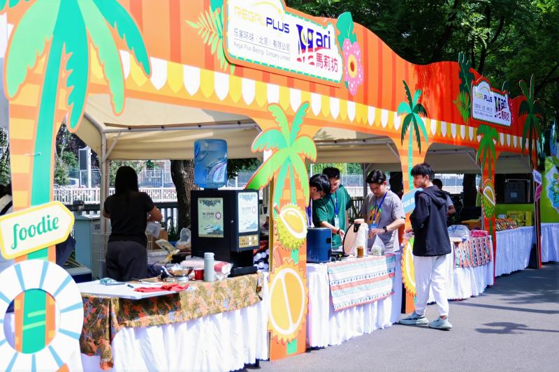 位于露台的互动体验区堪称欢乐制造机。“闻chill识榴莲”挑战嗅觉极限,参与者需通过气味辨别不同品种;“臭味相投”将传统投壶游戏升级为放大版卡牌投掷,趣味性十足;“榴住快乐”真人娃娃机更是人气爆棚,参与者化身“巨型抓娃娃手”,沉浸式体验抓取榴莲盲盒的刺激感,现场笑声与欢呼声此起彼伏。逛累了还可以到主会场边的Zeng餐厅体验榴莲主题创意料理和特色中式小吃,感受传统与新奇的碰撞。