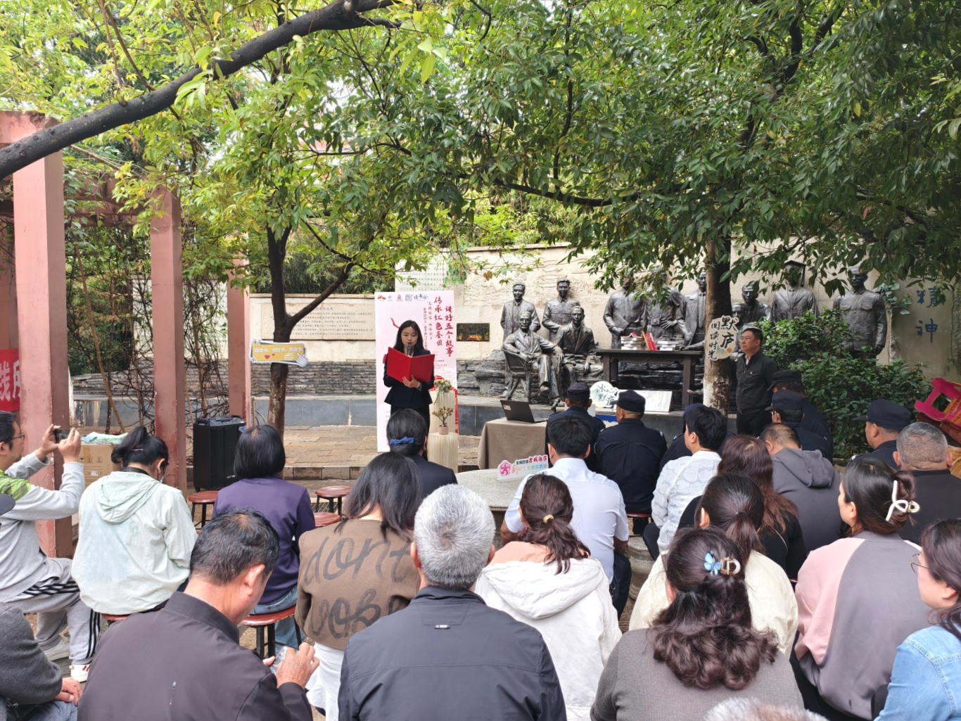 百年古建筑魁阁前,葱郁树荫摇曳着斑驳光影,费孝通等学者的铜像静静伫立,这场承载文化薪火的思想盛会仿佛一场时空对话,在静谧、诗意与满满的氛围感中拉开序幕。呈贡区党史宣讲团成员、呈贡区文学作家协会会员张庆非以“费孝通与呈贡魁阁”为主题,围绕费孝通的生平事迹、社会学的作用、费孝通与古城的故事以及抗战时期古城村的历史,深入浅出地讲述了费孝通先生在呈贡魁阁开展学术研究历程和“魁阁精神”在呈贡的传承和影响。