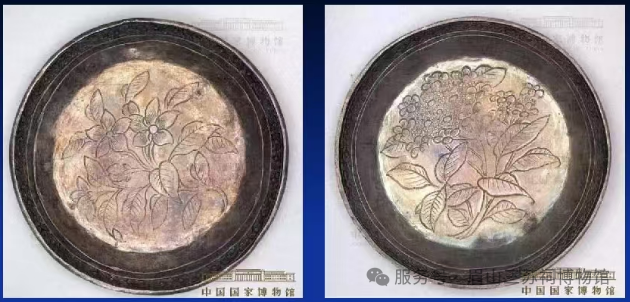 如1981年江苏溧阳平桥宋代窖藏中,出土的一套银器中有一组共九件的小银碟,九件小碟底部分别刻了牡丹、樱桃、绣球、山茶、芙蓉等九种不同花卉,制作十分精美,由此可见宋代饮食已经十分讲究。