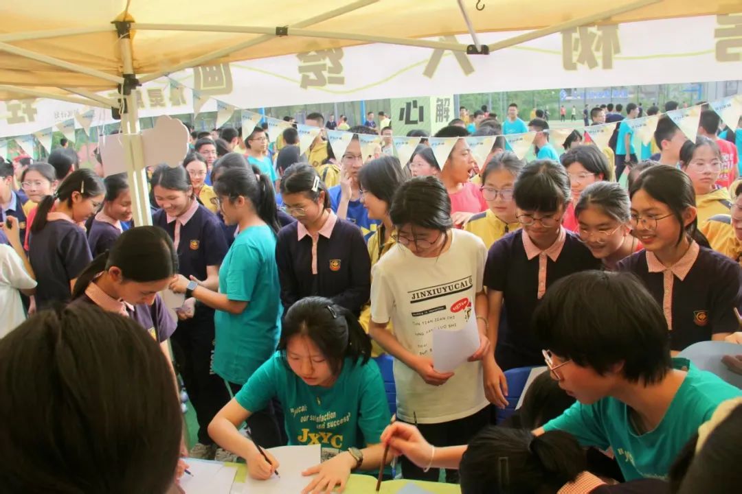 讲座结束后,心灵集市活动在育才中学篮球场热闹展开。集市通过设置“情绪宣泄——挑战高分贝”“坏情绪典当铺”“房树人绘画”“音乐疗愈”等多个互动摊位,让学生在体验心理游戏的过程中更好地了解自己的心理状态,学习体验应对压力的方法。