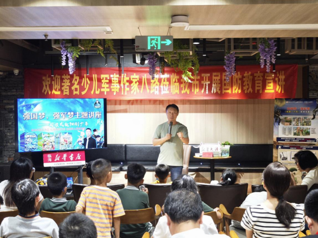 近日,临海市人武部邀请军事儿童作家“八路”以“沉浸式体验+场景化讲解”模式组织开展国防教育进校园、进书店活动。