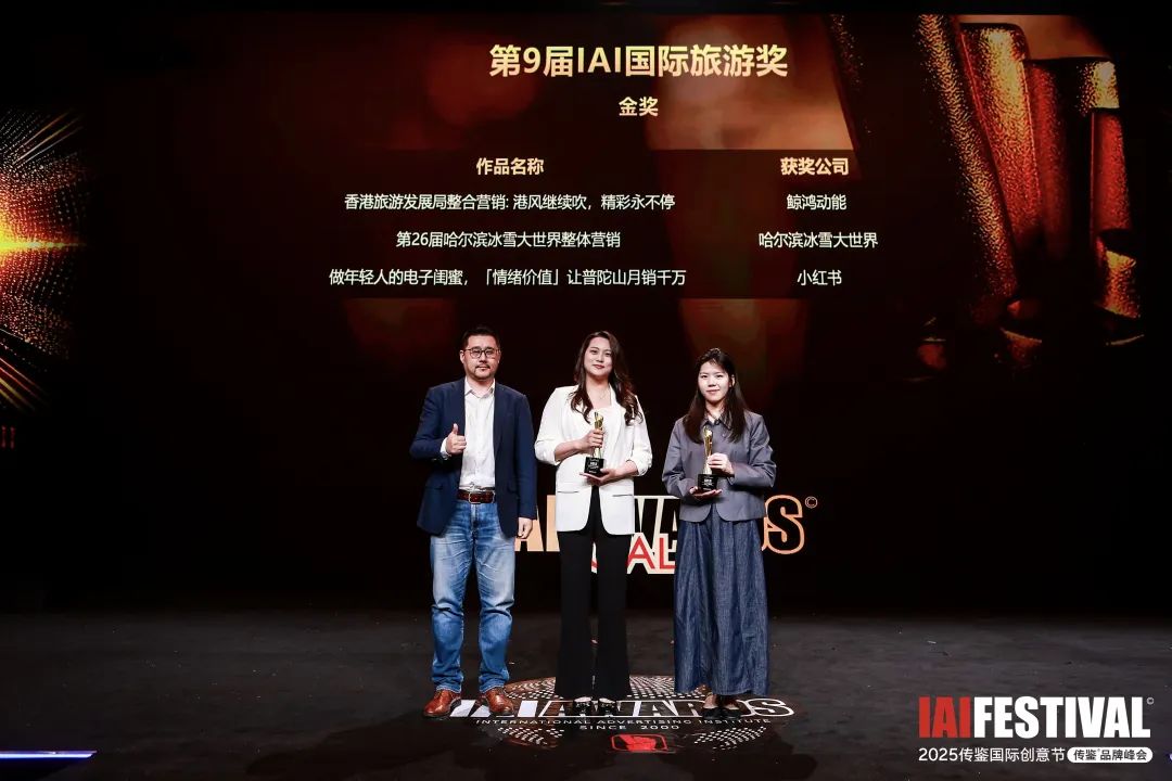 5月22日晚,第25届IAI传鉴国际广告奖&垂直奖颁奖礼在北京盛大举行。凭借自身实力与2024-2025年冰雪季的出色表现,继斩获第24届IAI传鉴国际广告奖IAI国际旅游奖旅游品牌营销金奖后,第二十六届哈尔滨冰雪大世界再次荣获IAI国际旅游奖文旅IP营销类金奖。
