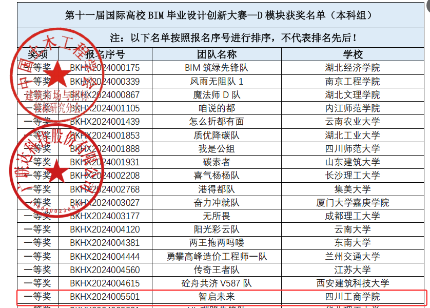 近日,第十一届国际高校BIM毕业设计大赛圆满落幕,公布了总决赛获奖名单。四川工商学院在本次赛事中表现优异,共斩获一等奖2项、二等奖3项、三等奖4项、优秀奖3项,创下该校在该赛事中的历史最佳成绩,充分展现了学校在建筑信息模型(BIM)领域教学与科研的卓越实力。