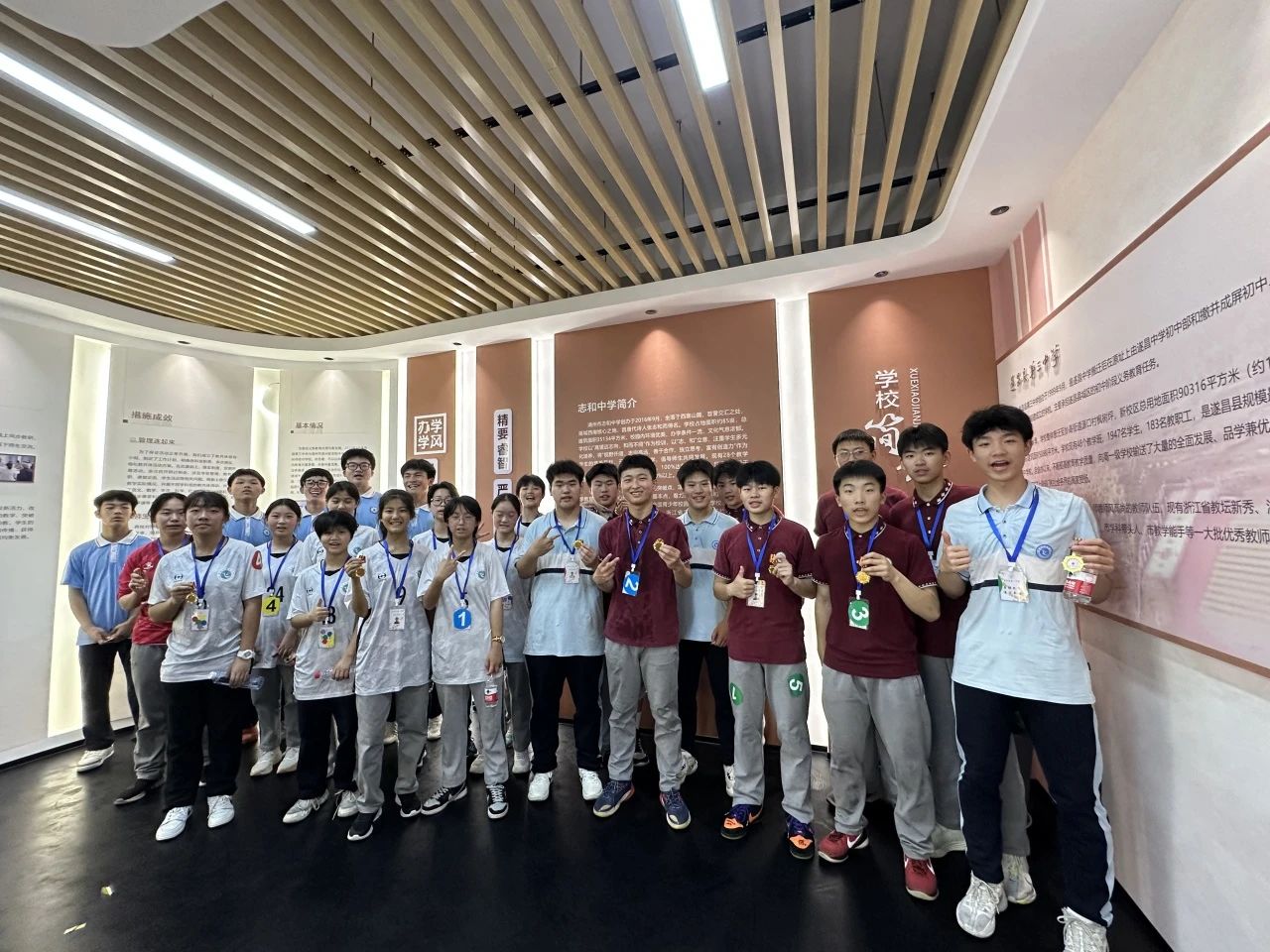交流期间,在两校师生代表的共同见证下,遂昌县第三中学、湖州志和中学线下交流活动中心正式揭牌,标志着两校教育合作交流进入新阶段。走进线下交流活动中心,首先映入眼帘的是一张张教共体活动的记录照片,墙面上一段段文字清晰记录着两校在硬件设施建设、德育建设、师生共进等方面的合作举措、成效以及对未来的展望。