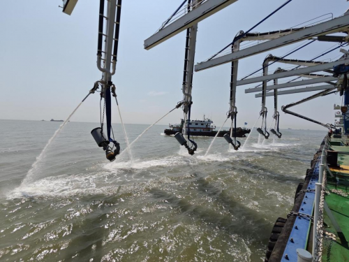 如今,多功能智能环保铺排船已在多个项目中成功应用,标志着我国在海洋工程装备领域实现了全新的技术引领。在这“深海作战平台”的支撑下,无论是江河水域、沿海浅滩,还是深水港等不同环境条件,吹填造陆、围堰筑堤以及水上建筑物工程的铺排已“不在话下”。