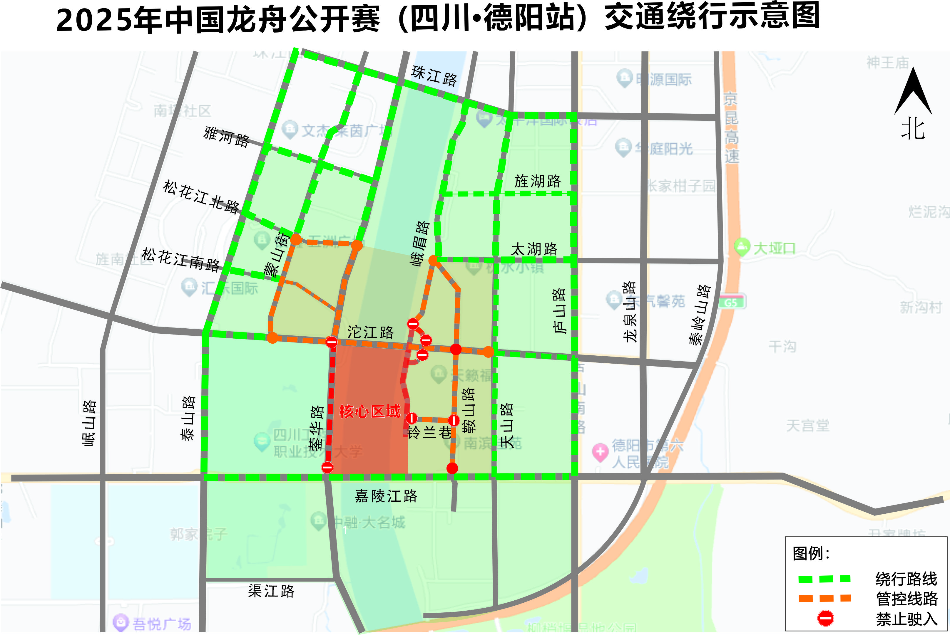 2025全国龙舟大联动暨“划遍四川”德阳端午龙舟公开赛将在德阳市区旌湖(珠江桥至嘉陵江桥)水域举行,为确保活动顺利进行,根据《中华人民共和国道路交通安全法》第三十九条之规定,活动举办期间将对周边道路实施临时交通管制。