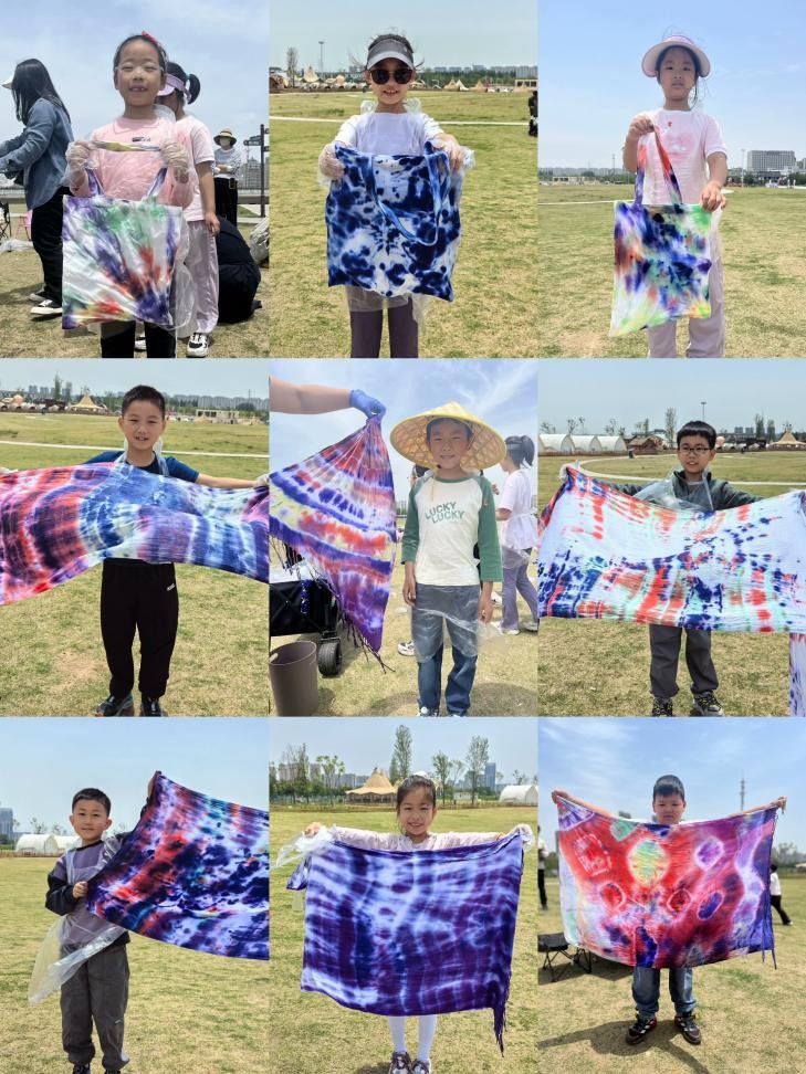随后,蘸上五彩斑斓的染料,原本单调的布料渐渐呈现出独一无二的花纹。每一件作品都凝聚着队员们的创意与巧思,在感受传统非遗魅力的同时,也培养了他们的动手能力和审美情趣。