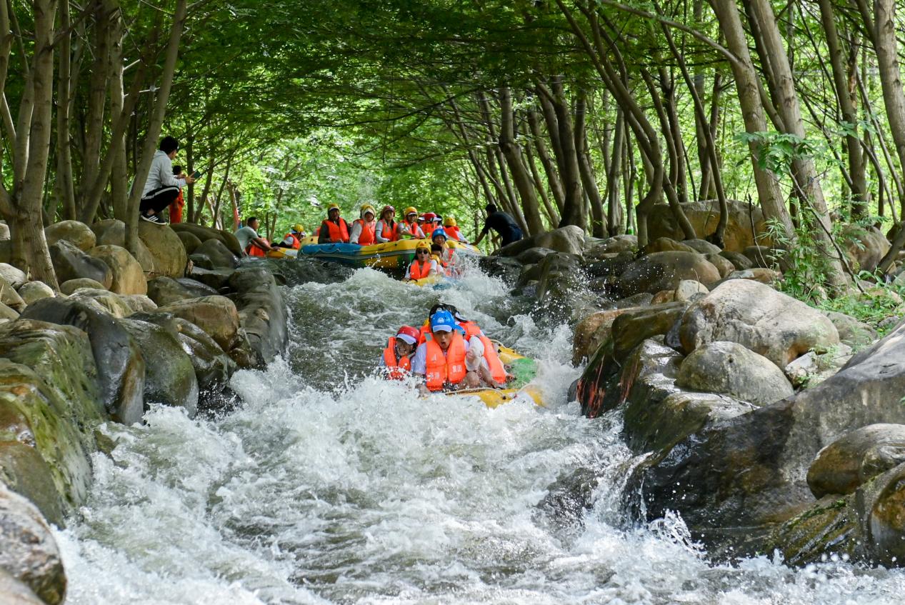 尧山大峡谷漂流是全国著名的漂流景区,也是中原地区为数不多的以漂流为主题的国家4A级旅游景区,漂流河道长,落差大,既有河水湍急、惊险刺激的激流勇进,又有奇峰异石、水光山色的山水画卷,全程自由漂流时长4小时,是中原地区规模大、人气旺、品牌好、口碑佳的漂流胜地。