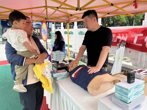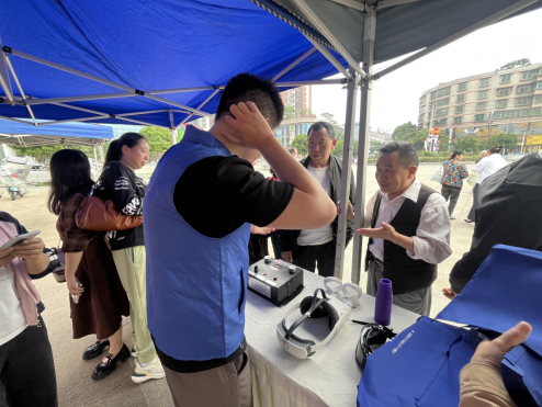 “在突发小型、可控制的火灾时,我们可以采取措施有效遏制火灾态势进一步恶化。这时,需要我们正确掌握灭火设备的使用方法。”在独山县中南广场,工作人员手持灭火器,结合知识展板为现场的参与人员现场演示灭火器的使用方法,吸引了众多市民群众的围观和关注。此外,为进一步宣传工伤预防知识,活动还通过VR模拟体验、防护用品佩戴展示、急救技能现场教学等“沉浸式”宣传形式,深入讲解工伤预防和应急救援知识,组织现场的市民群众主动参与互动学习,在玩中学、学中练,掌握实用的安全知识和技能。